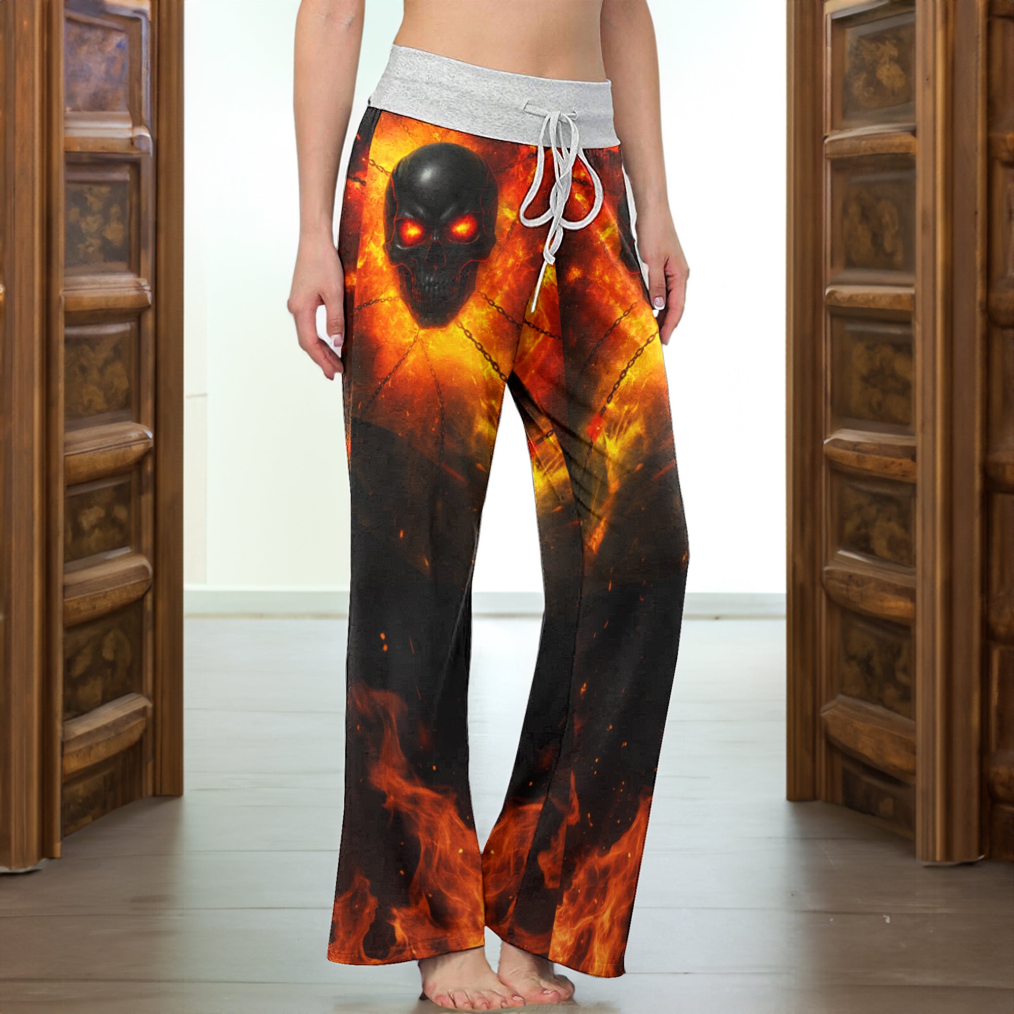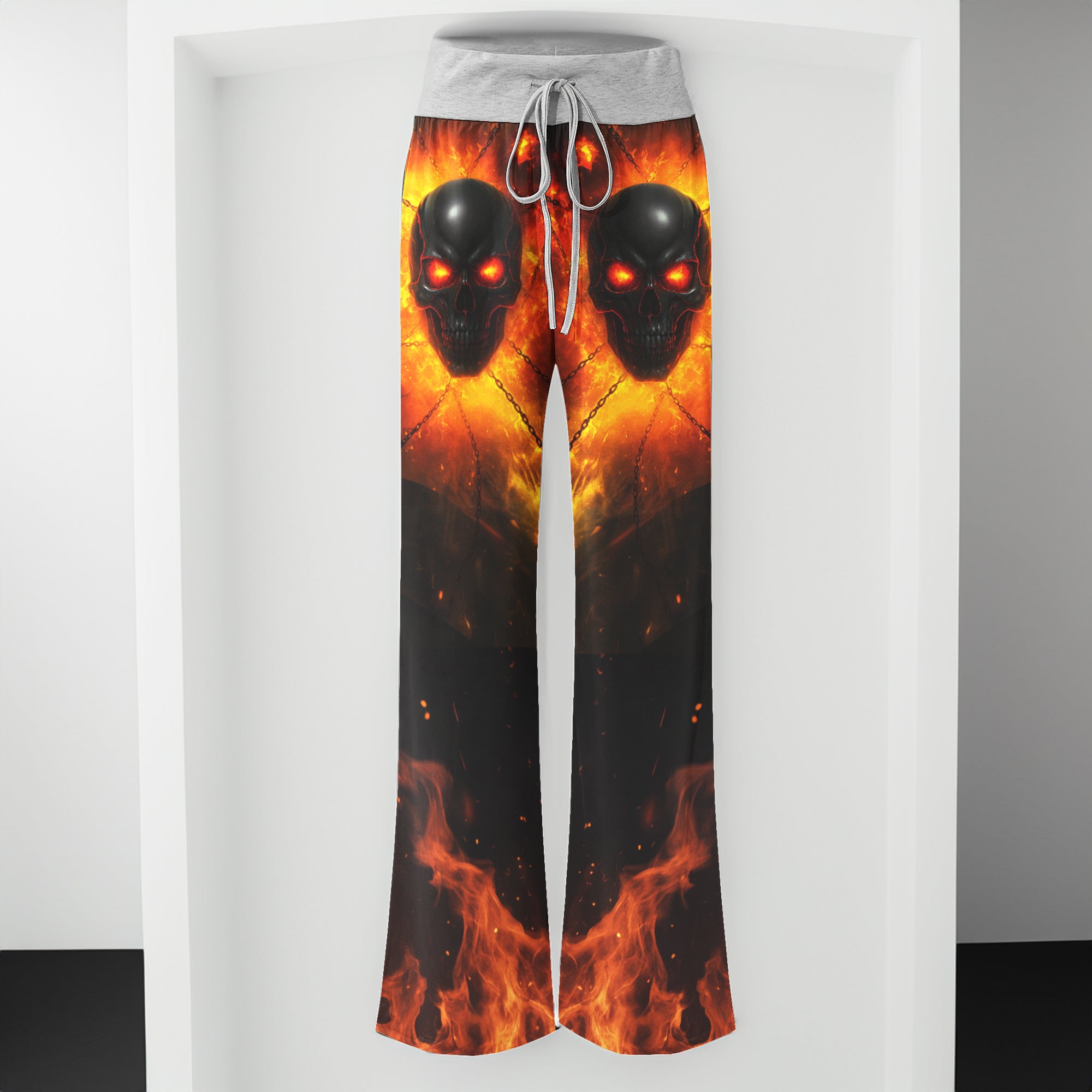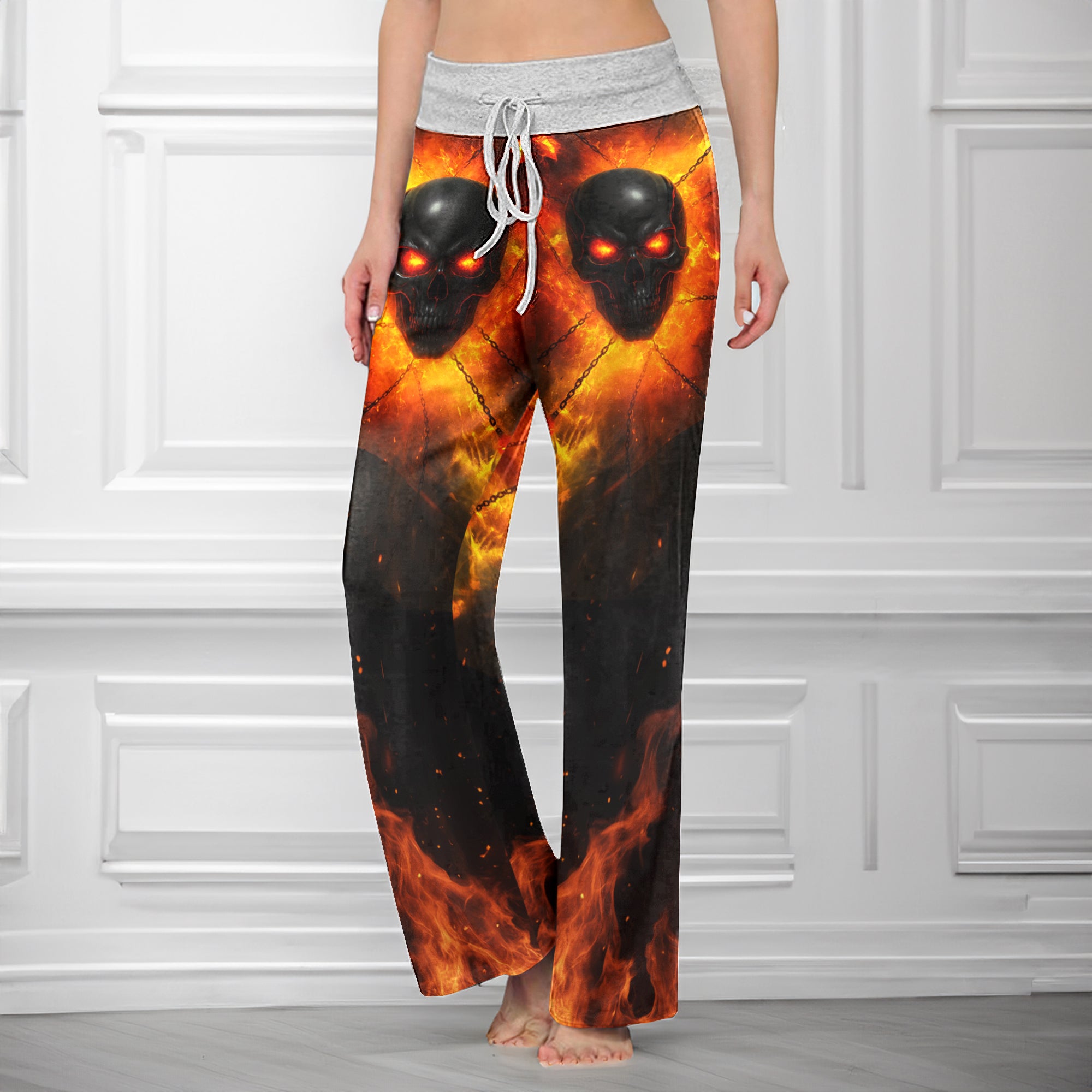 Chained Fury Skull Women's High-waisted Wide Leg Pants