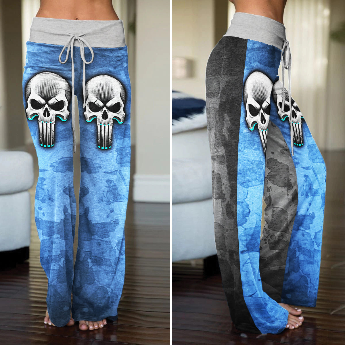 Cyber Skull Grunge Art Women's High-waisted Wide Leg Pants