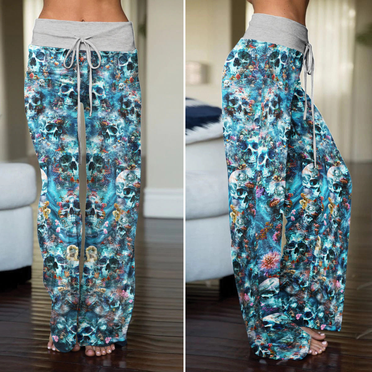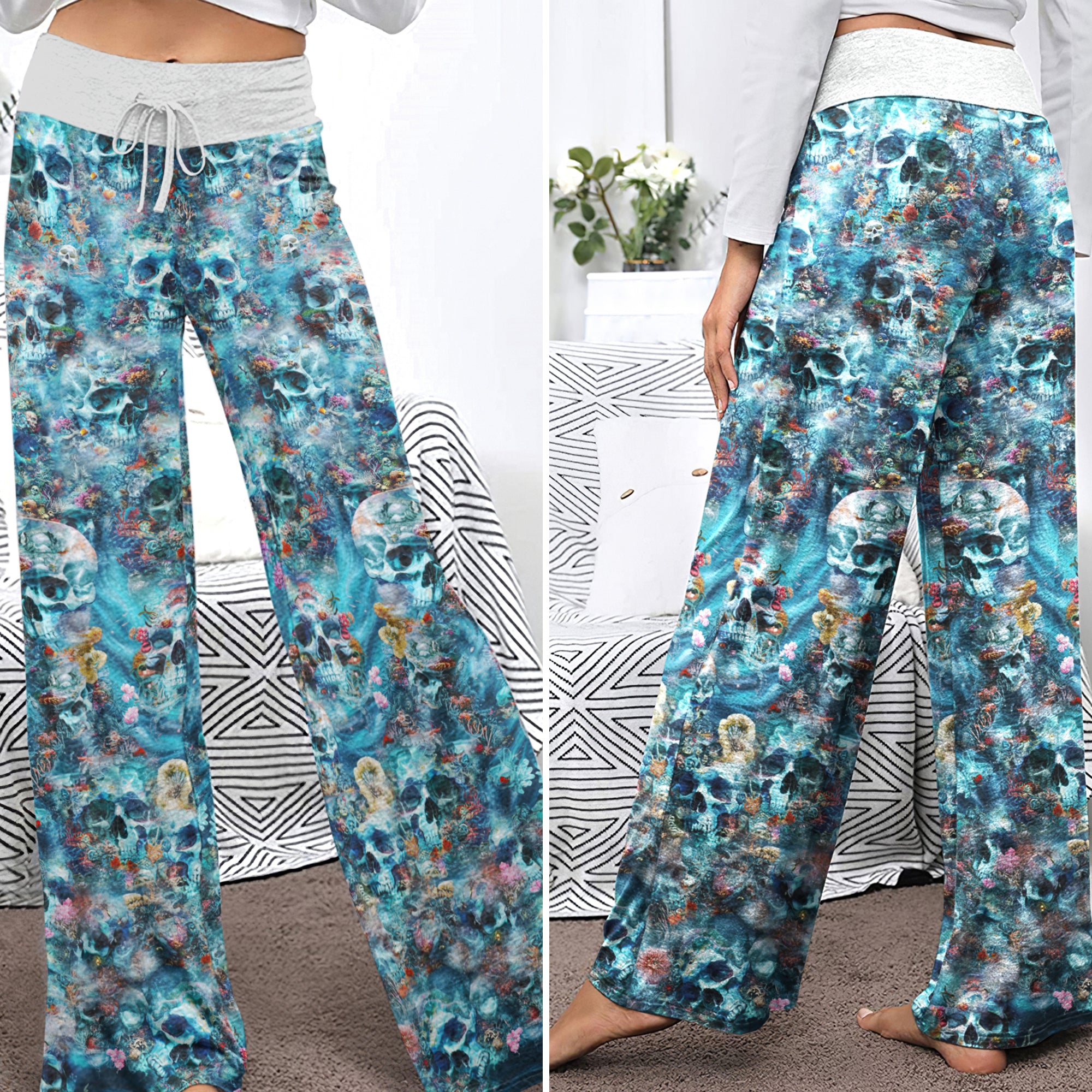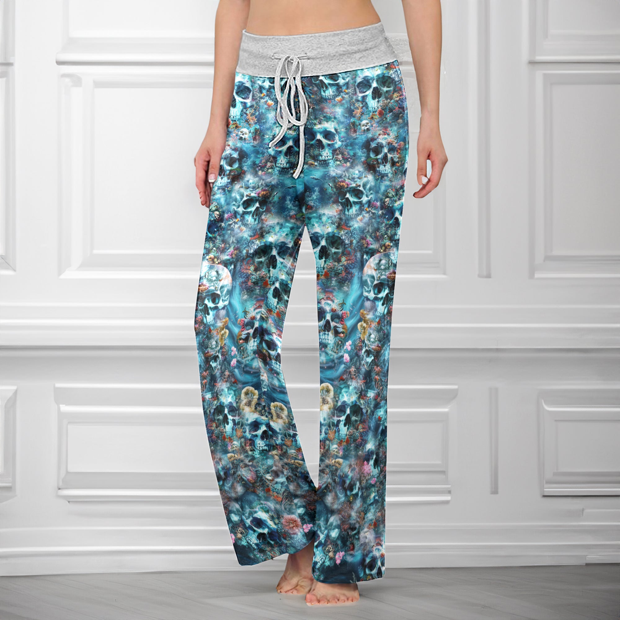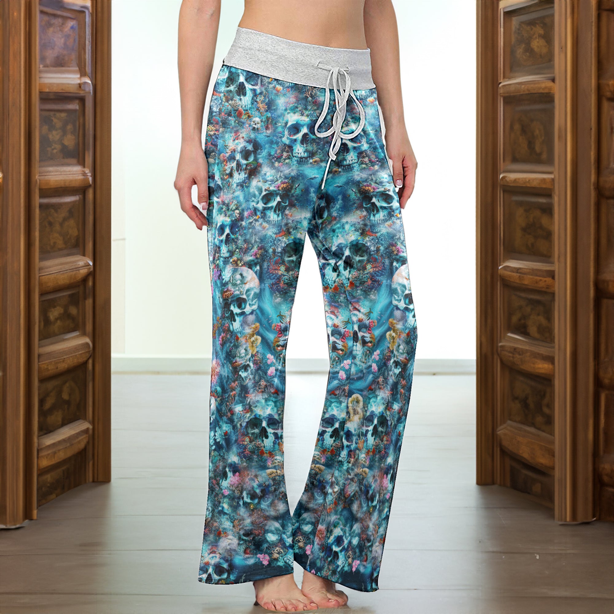 Enjoy the comfort and quality of the Deep Sea Remains Skull High-waisted Wide Leg Pants. Constructed from a premium lightweight fabric, it offers unlimited movement, along with a unique and stylish pattern. It features a wide waistband for a streamlined and flattering fit. Perfect for any occasion, these trousers provide the perfect blend of classic style and modern design.