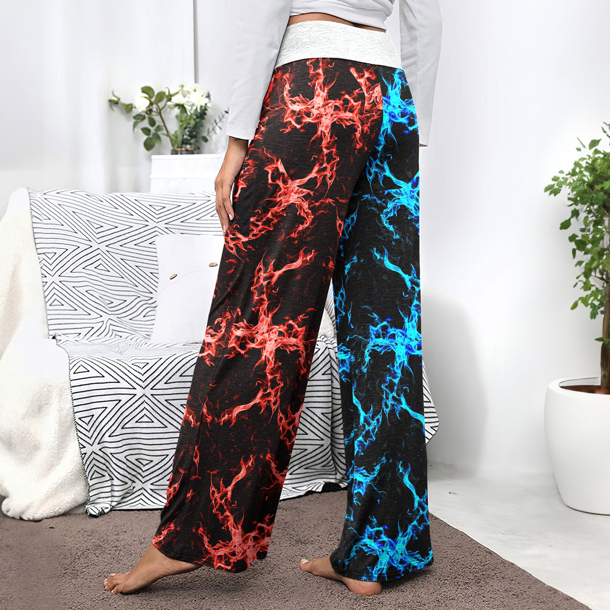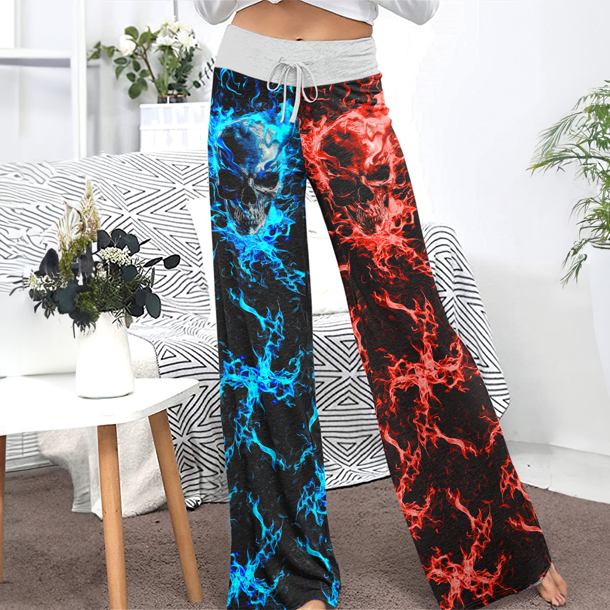 Enjoy the comfort and quality of the Eternal Flame Skull Art High-waisted Wide Leg Pants. Constructed from a premium lightweight fabric, it offers unlimited movement, along with a unique and stylish pattern. It features a wide waistband for a streamlined and flattering fit. Perfect for any occasion, these trousers provide the perfect blend of classic style and modern design.
