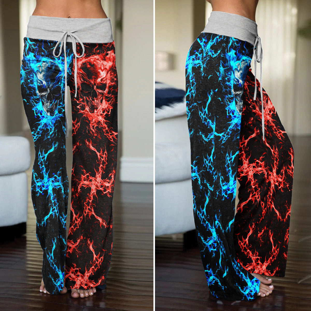 Eternal Flame Skull Art Women's High-waisted Wide Leg Pants