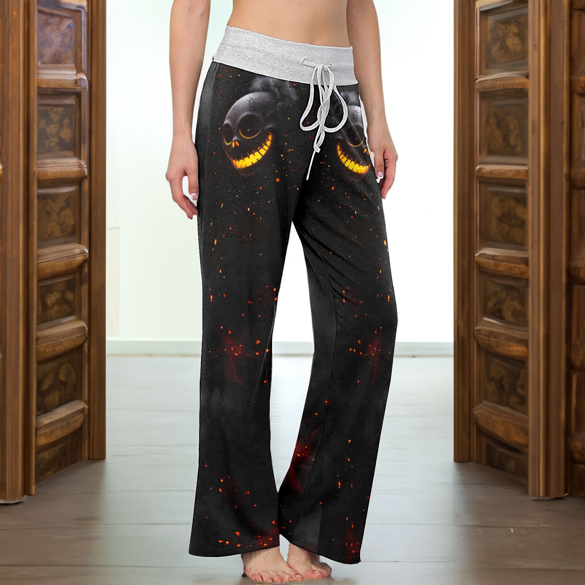 Flaming Skull Smile Women's High-waisted Wide Leg Pants