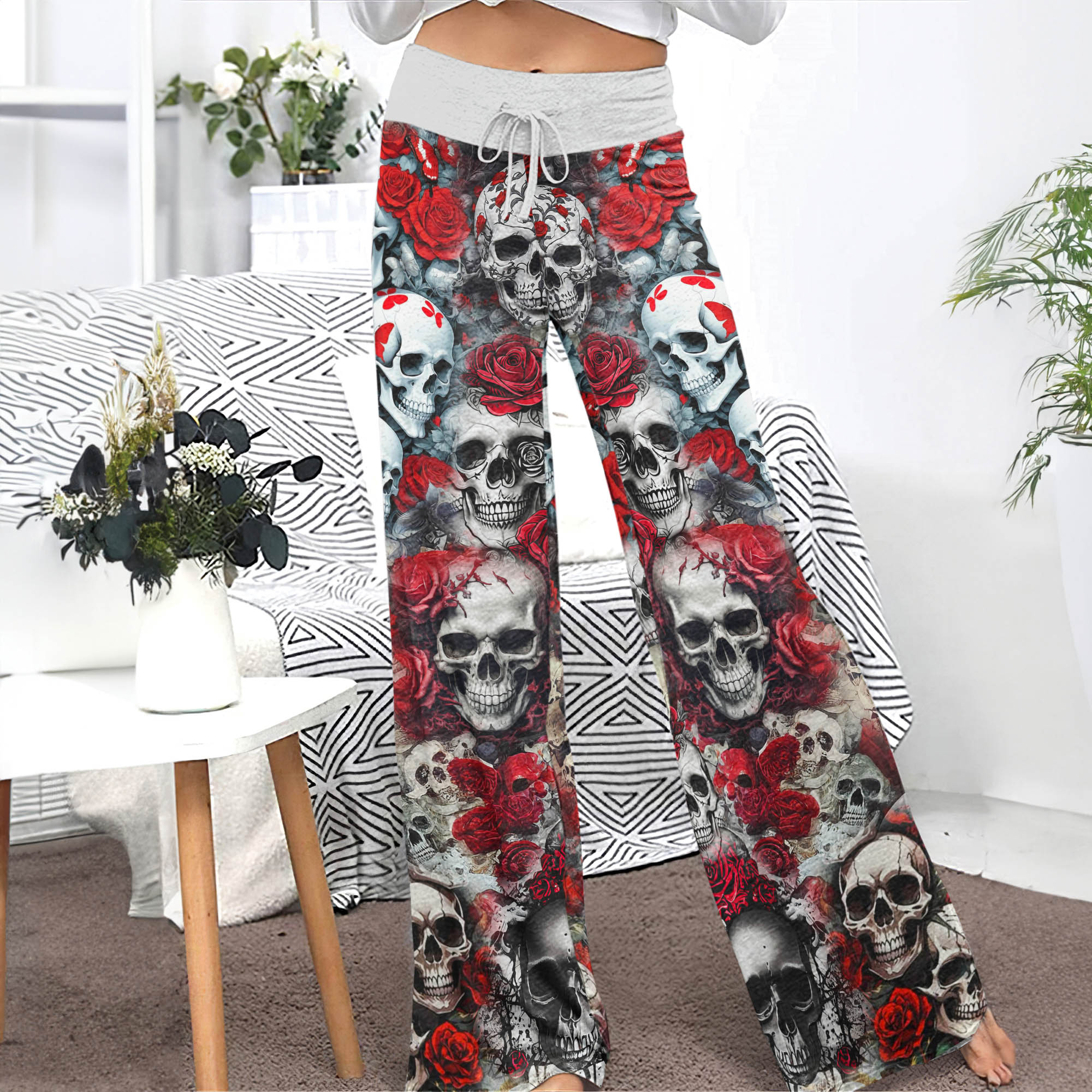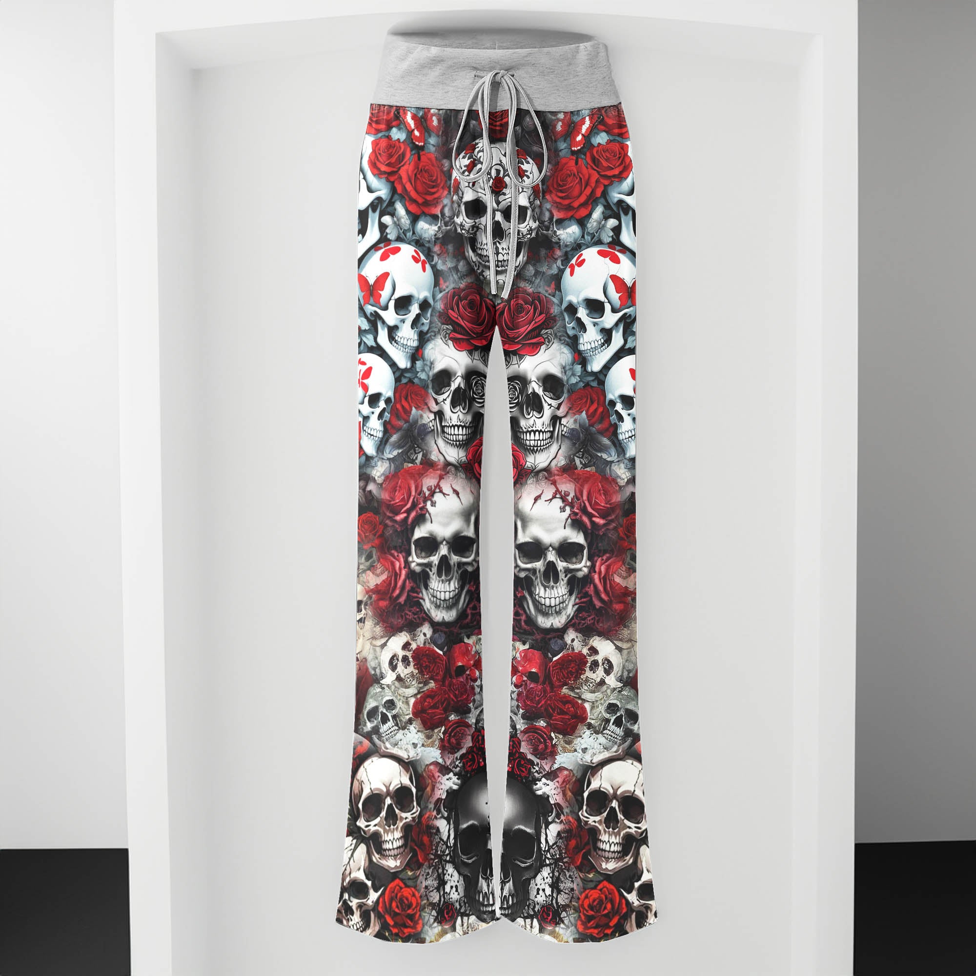 Enjoy the comfort and quality of the Gothic Skull Red Garden High-waisted Wide Leg Pants. Constructed from a premium lightweight fabric, it offers unlimited movement, along with a unique and stylish pattern. It features a wide waistband for a streamlined and flattering fit. Perfect for any occasion, these trousers provide the perfect blend of classic style and modern design.
