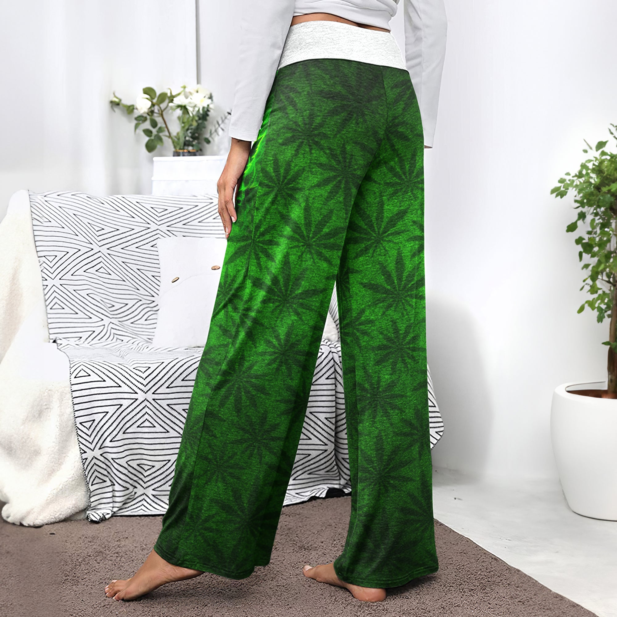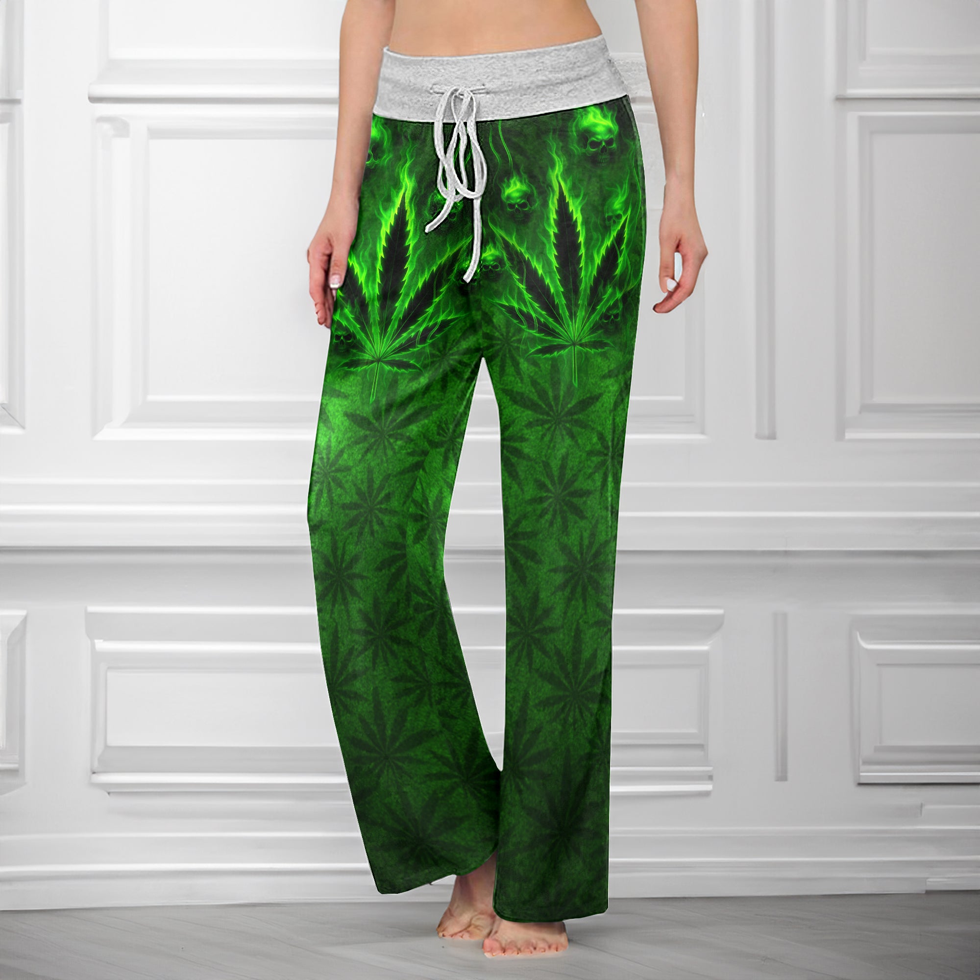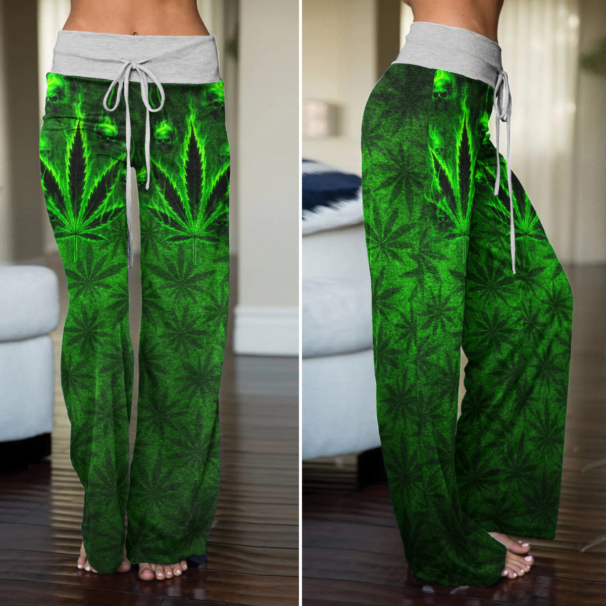 Green Leaf Skull Women's High-waisted Wide Leg Pants