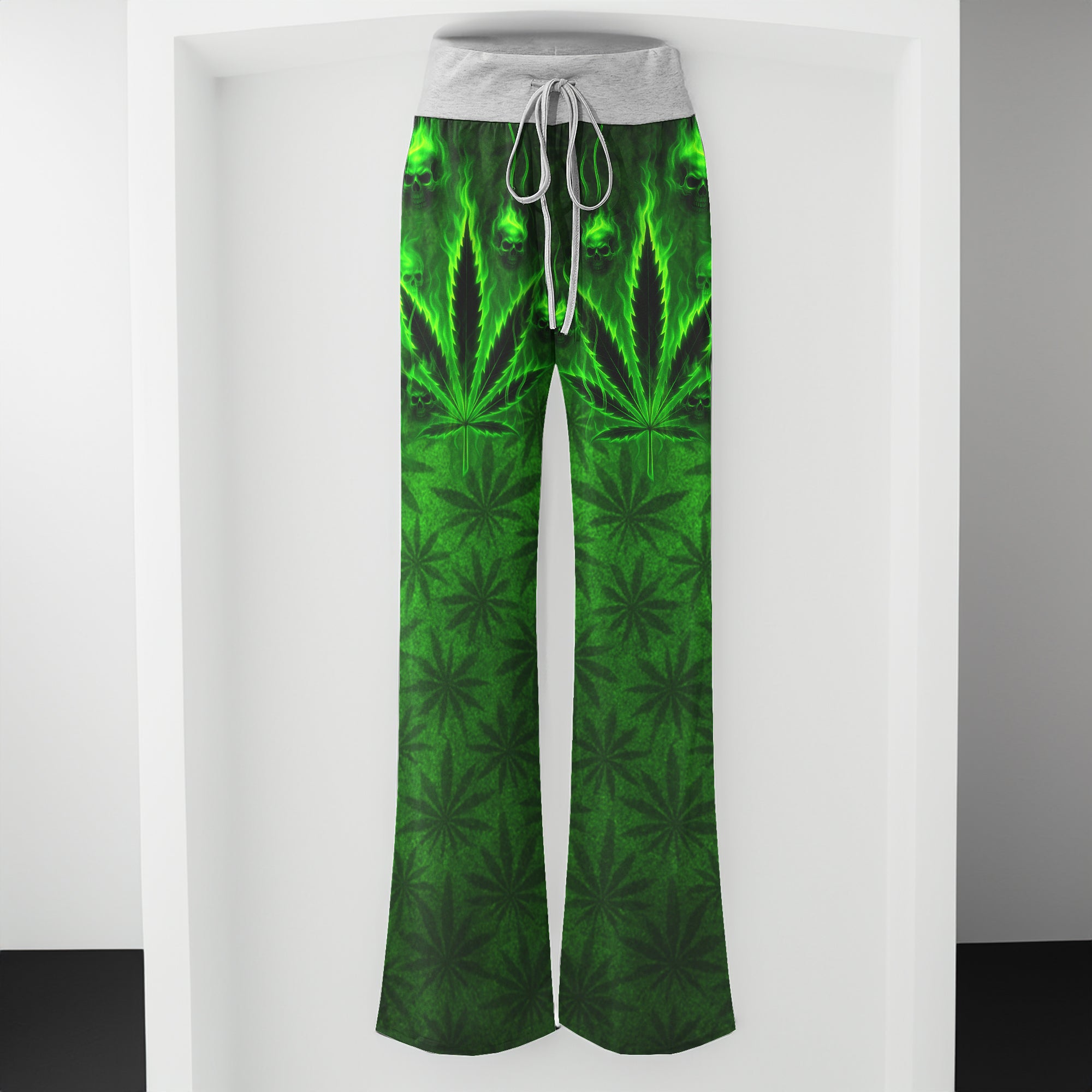 Enjoy the comfort and quality of the Green Leaf Skull High-waisted Wide Leg Pants. Constructed from a premium lightweight fabric, it offers unlimited movement, along with a unique and stylish pattern. It features a wide waistband for a streamlined and flattering fit. Perfect for any occasion, these trousers provide the perfect blend of classic style and modern design.