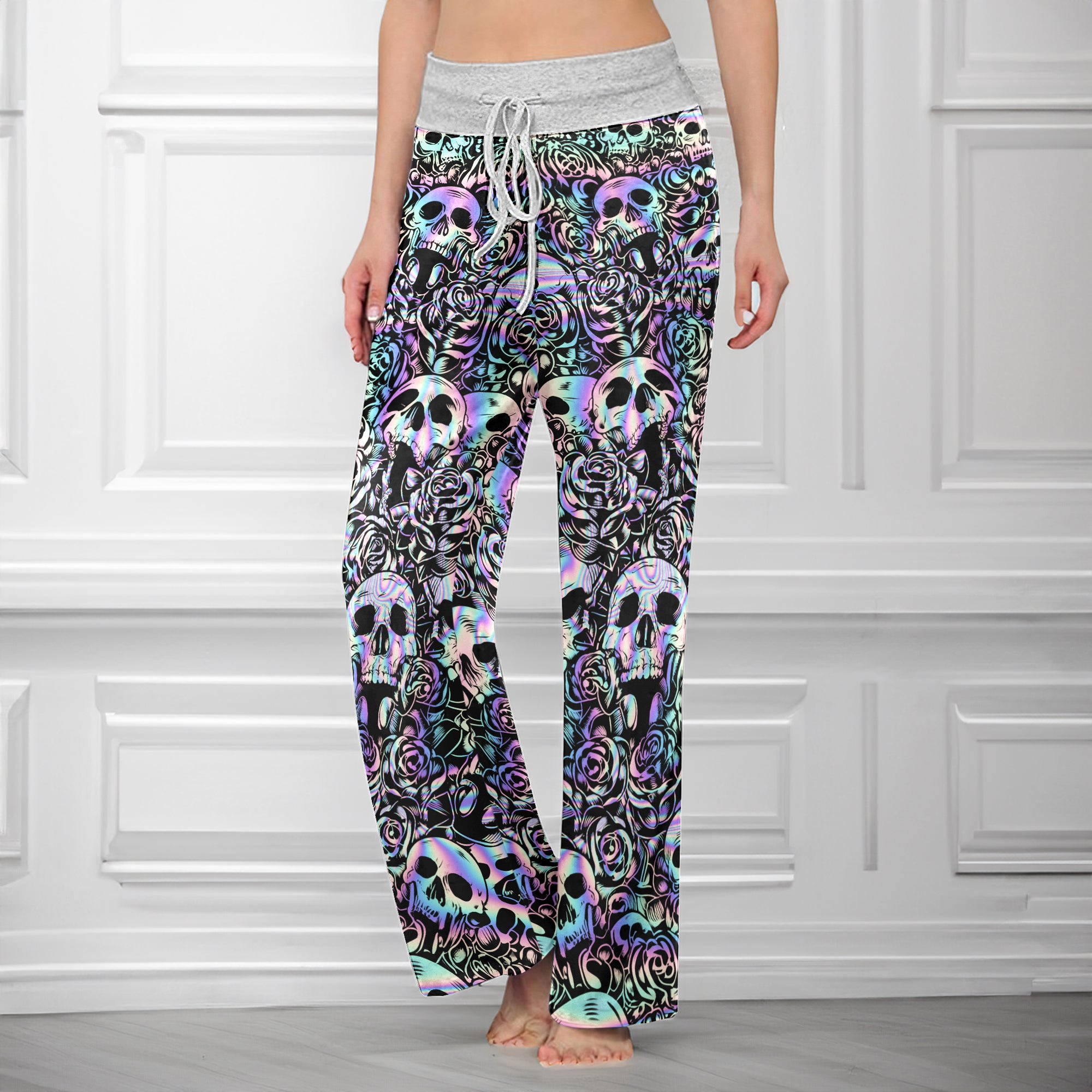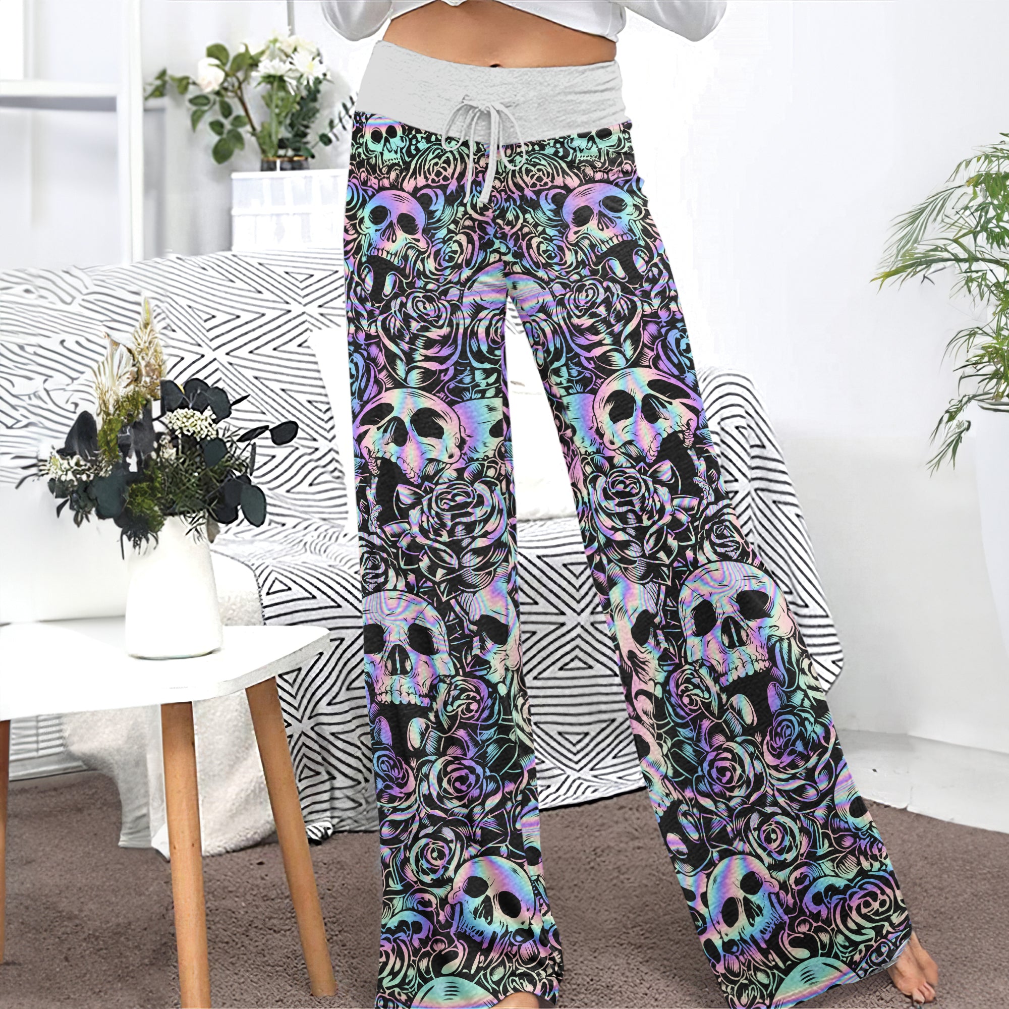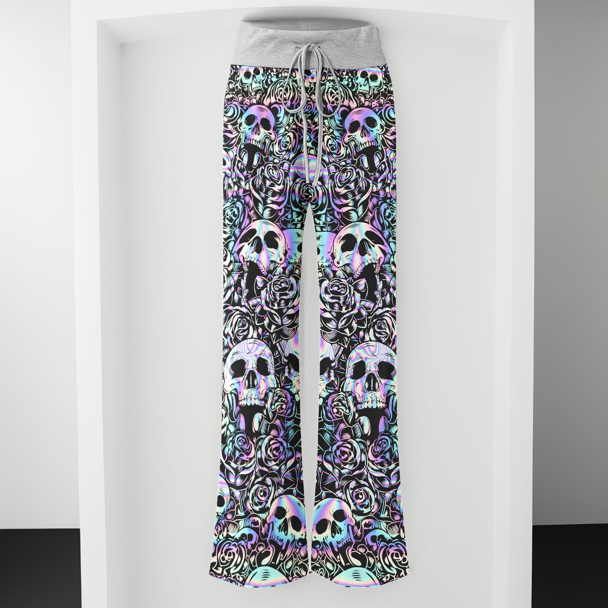 Holographic Skull Rose Women's High-waisted Wide Leg Pants