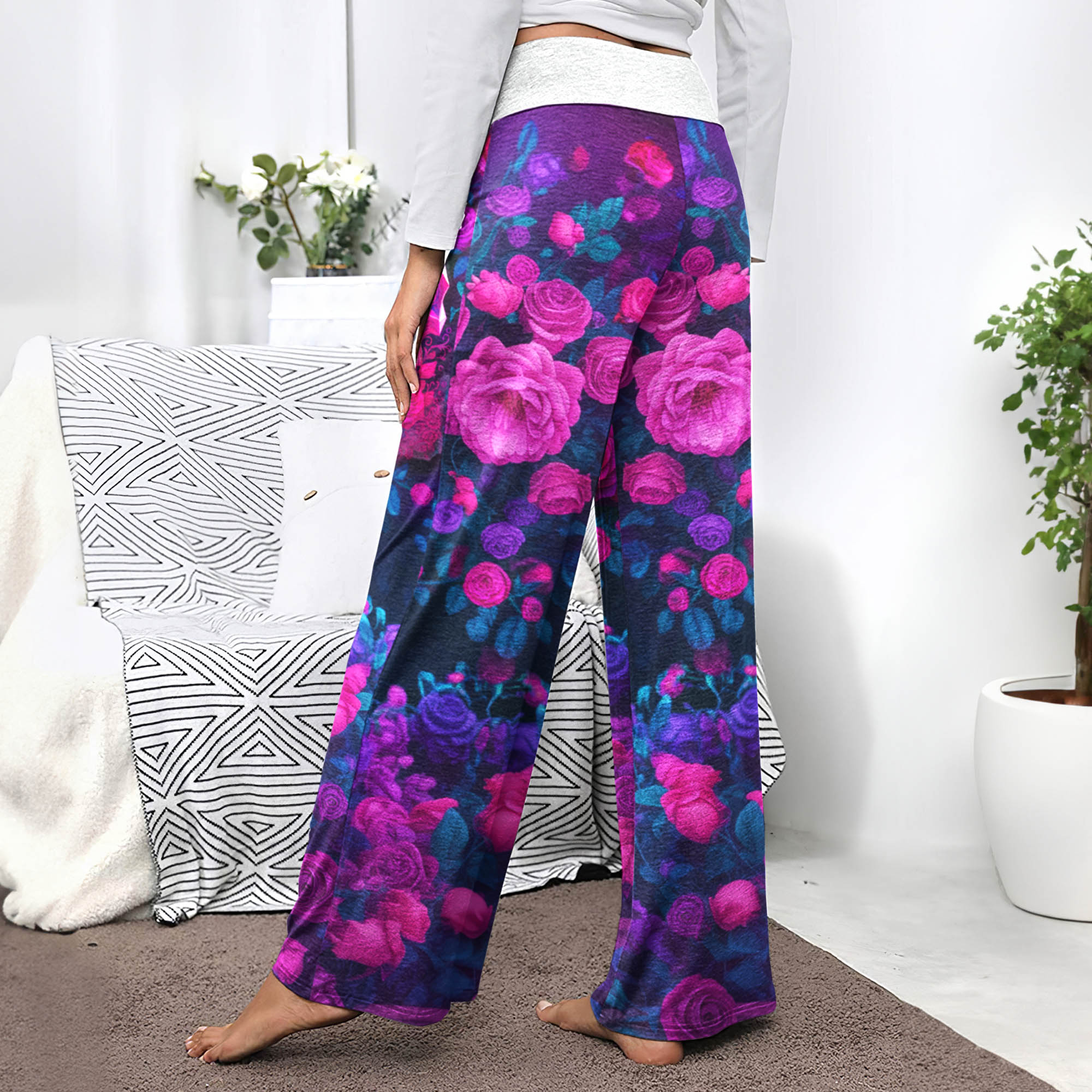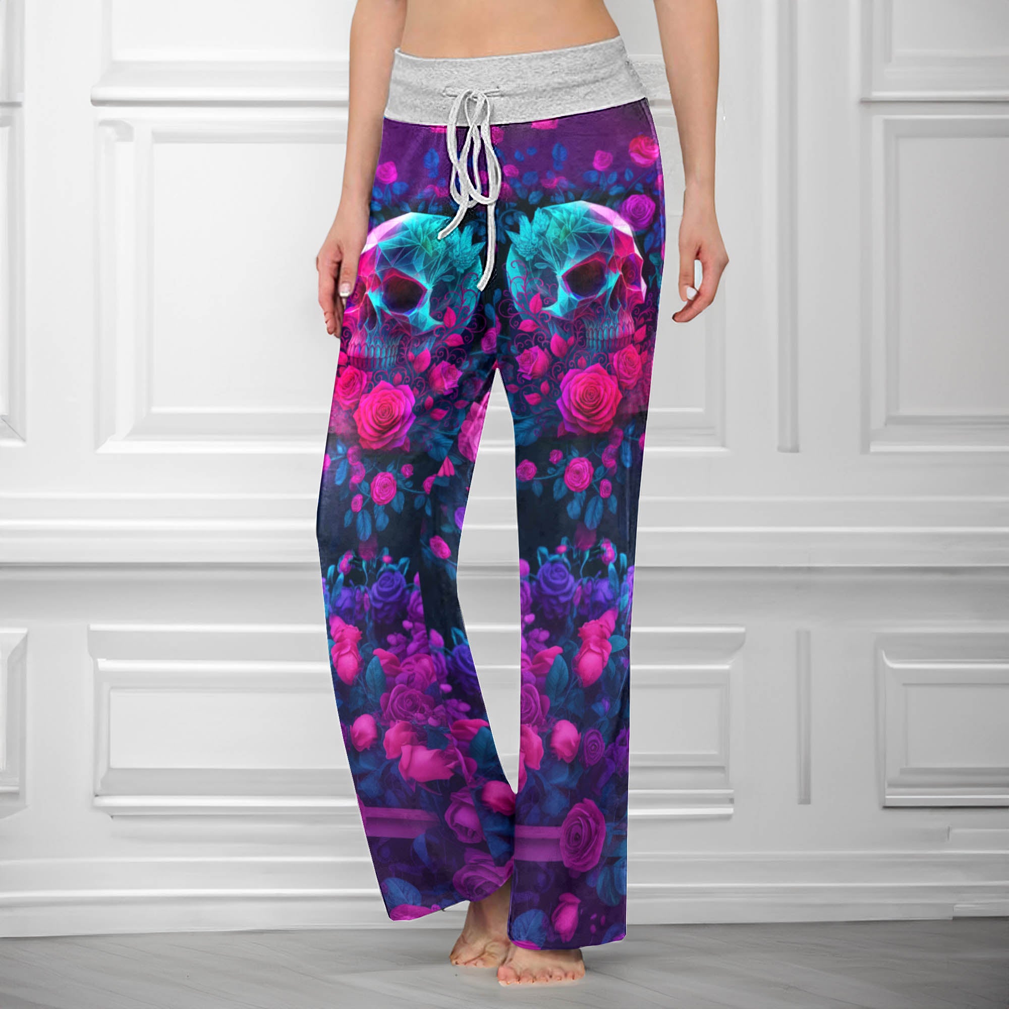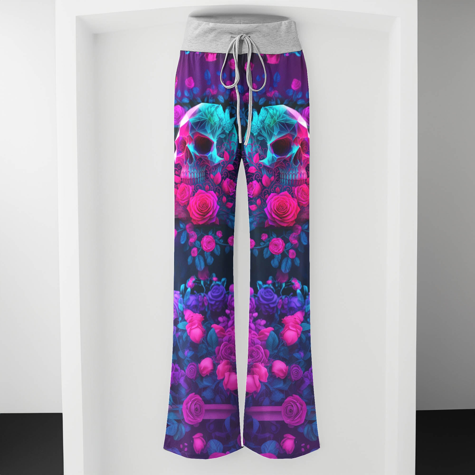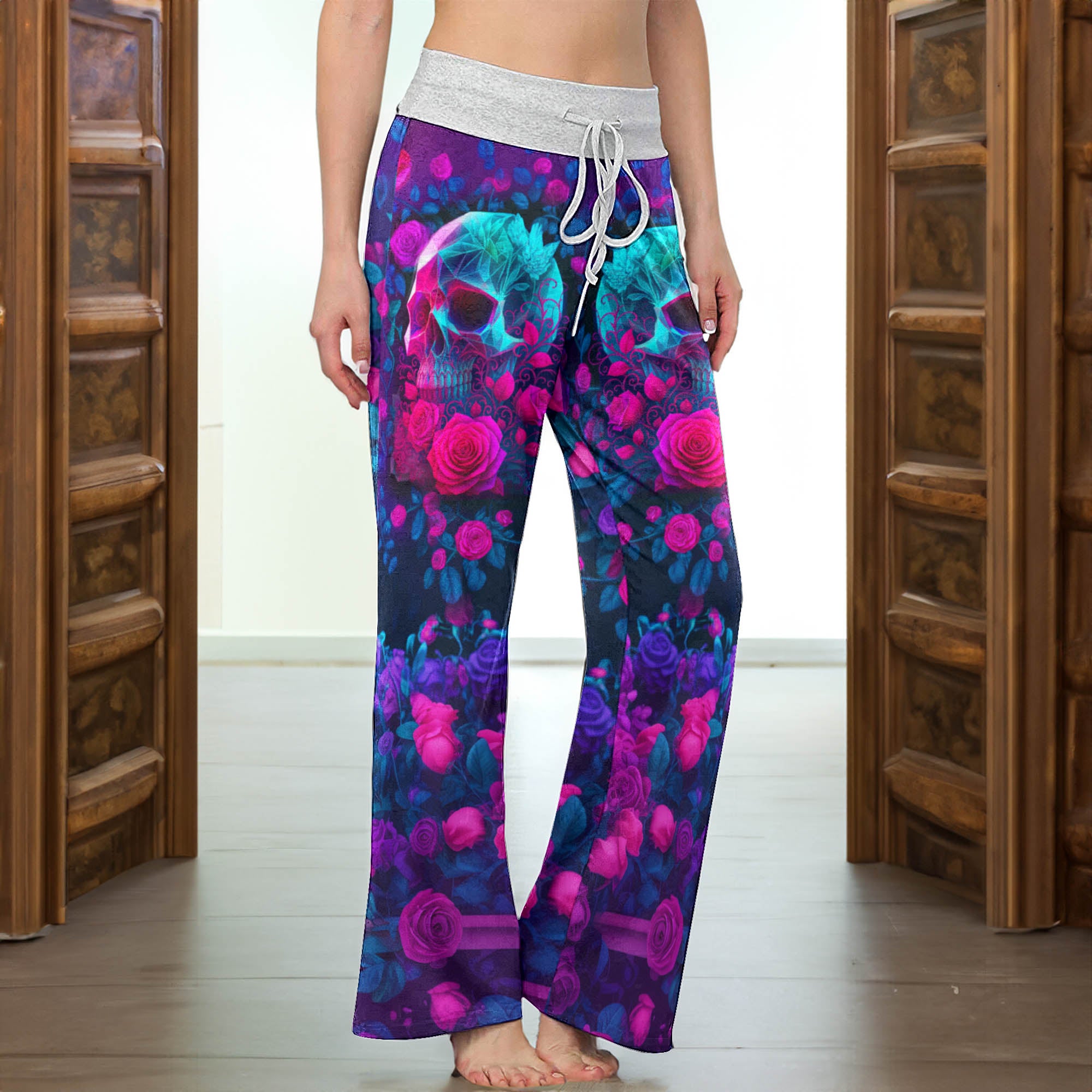 Neon Galaxy Skull Rose Women's High-waisted Wide Leg Pants