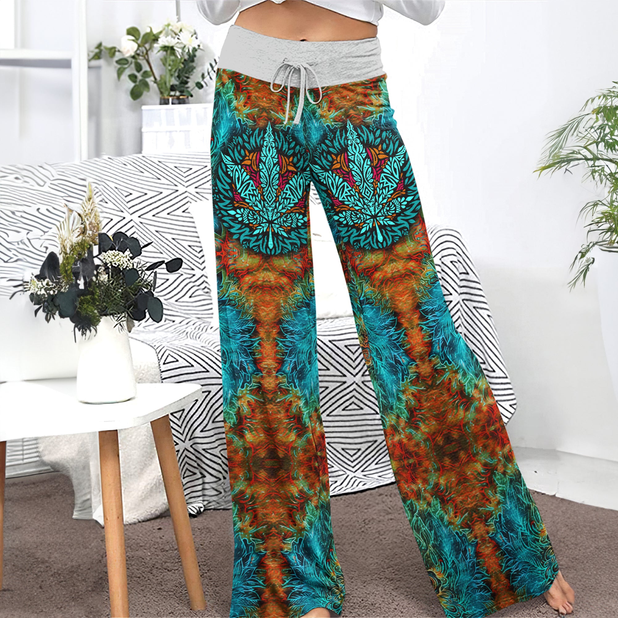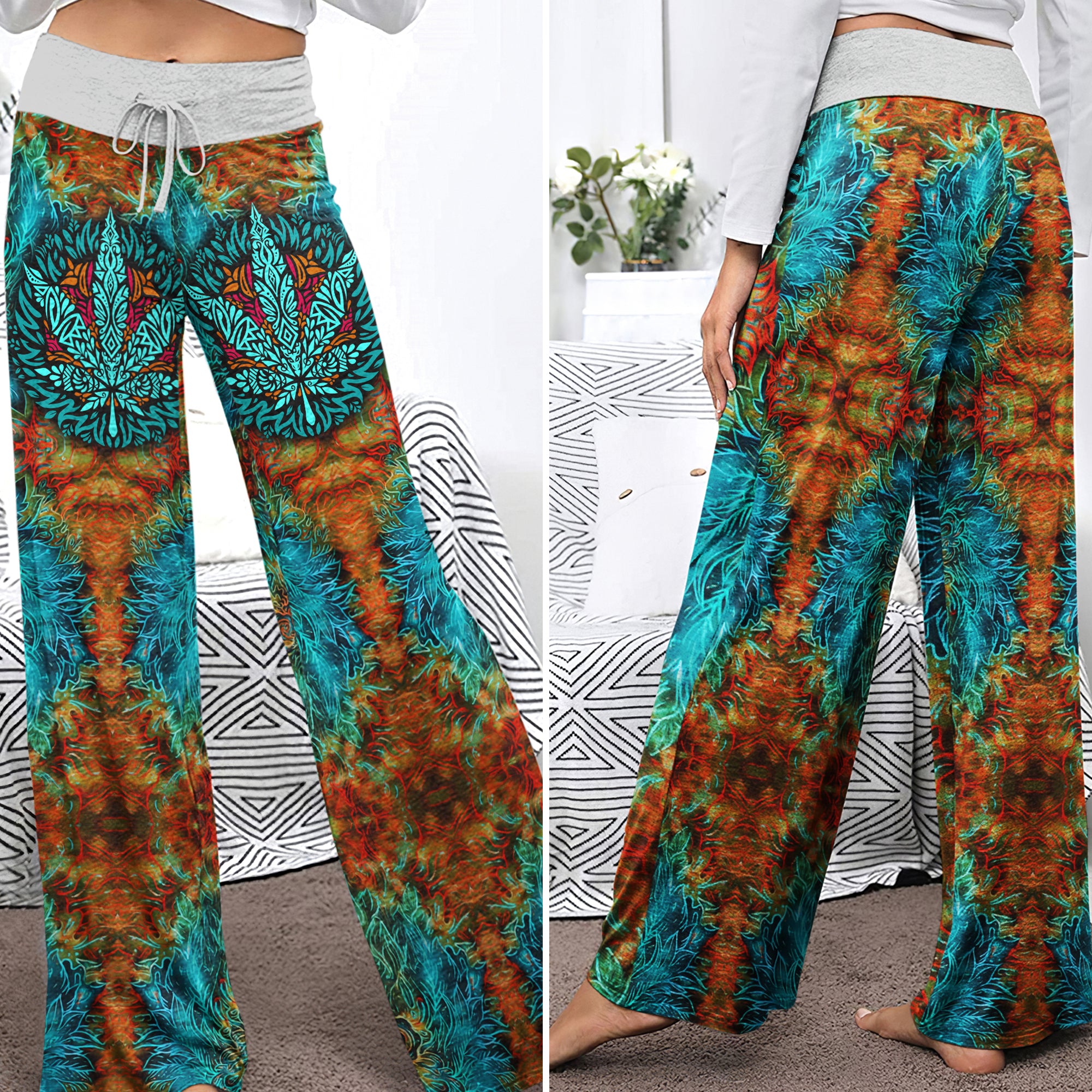 Abstract Leaf Artwork Women's High-waisted Wide Leg Pants | Wonder Skull