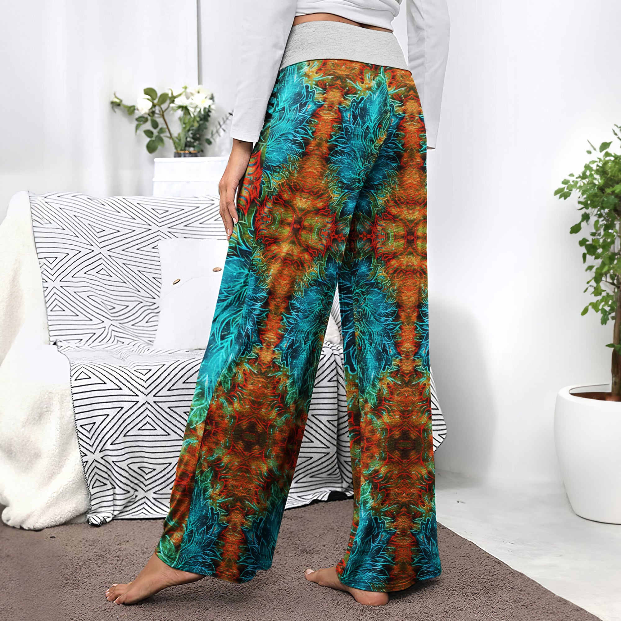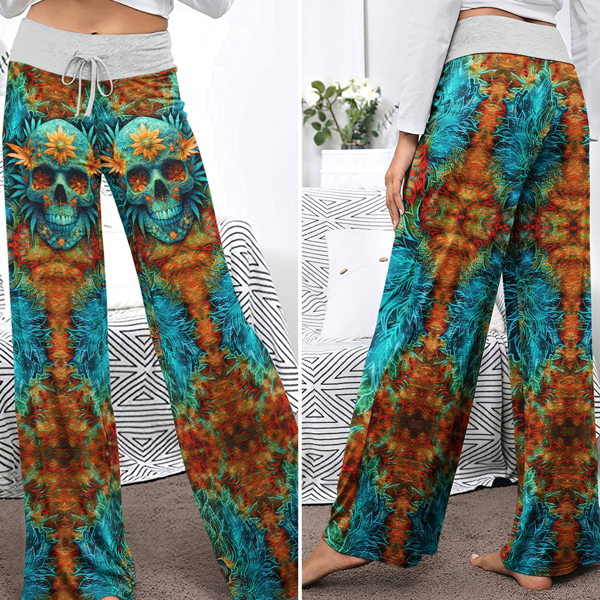 Abstract Skull Leaf Artwork Women's High-waisted Wide Leg Pants | Wonder Skull