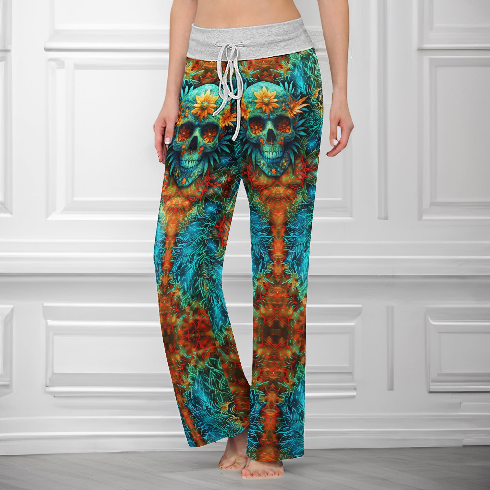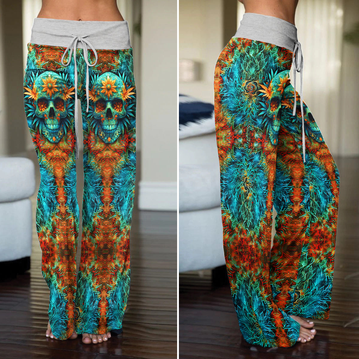 Abstract Skull Leaf Artwork Women's High-waisted Wide Leg Pants