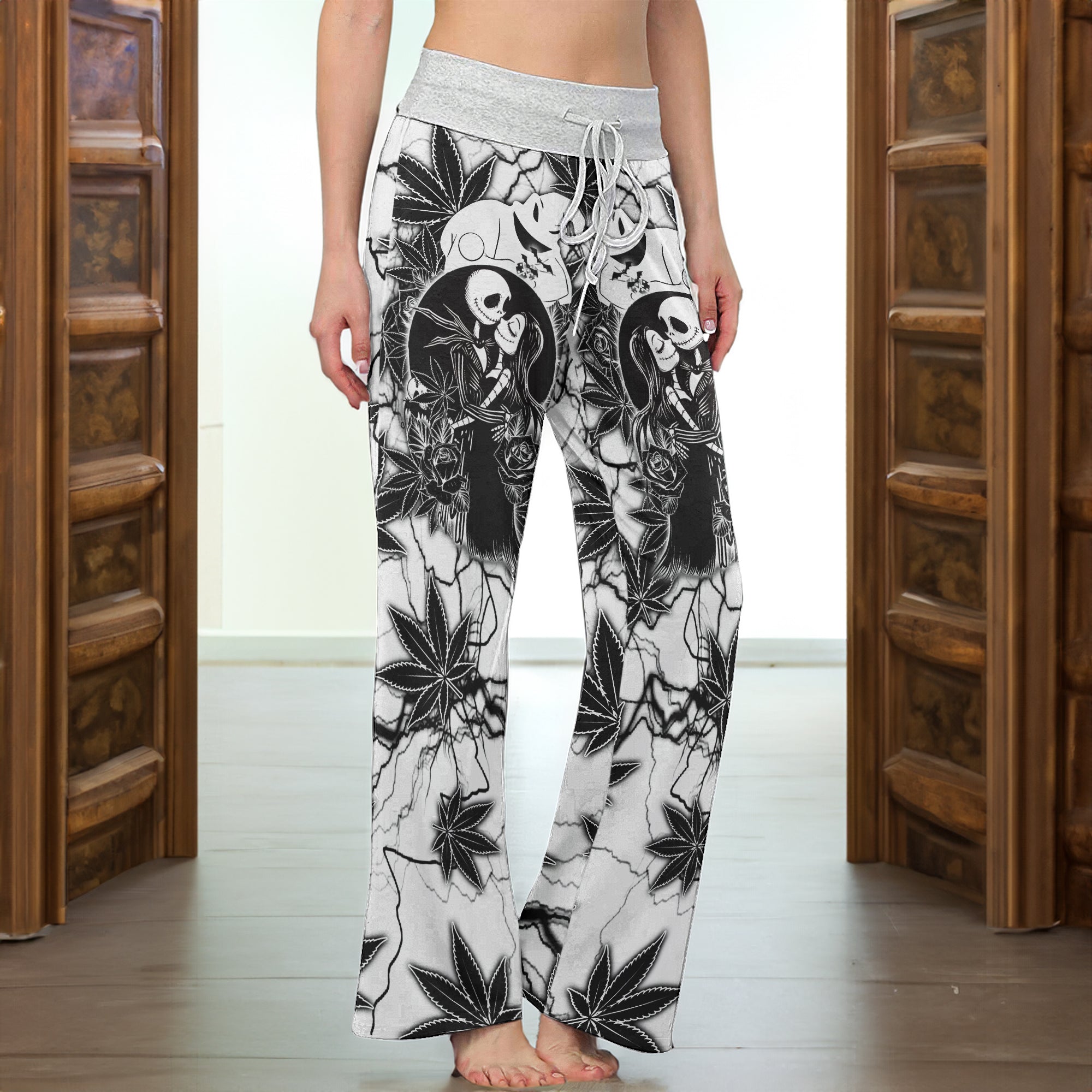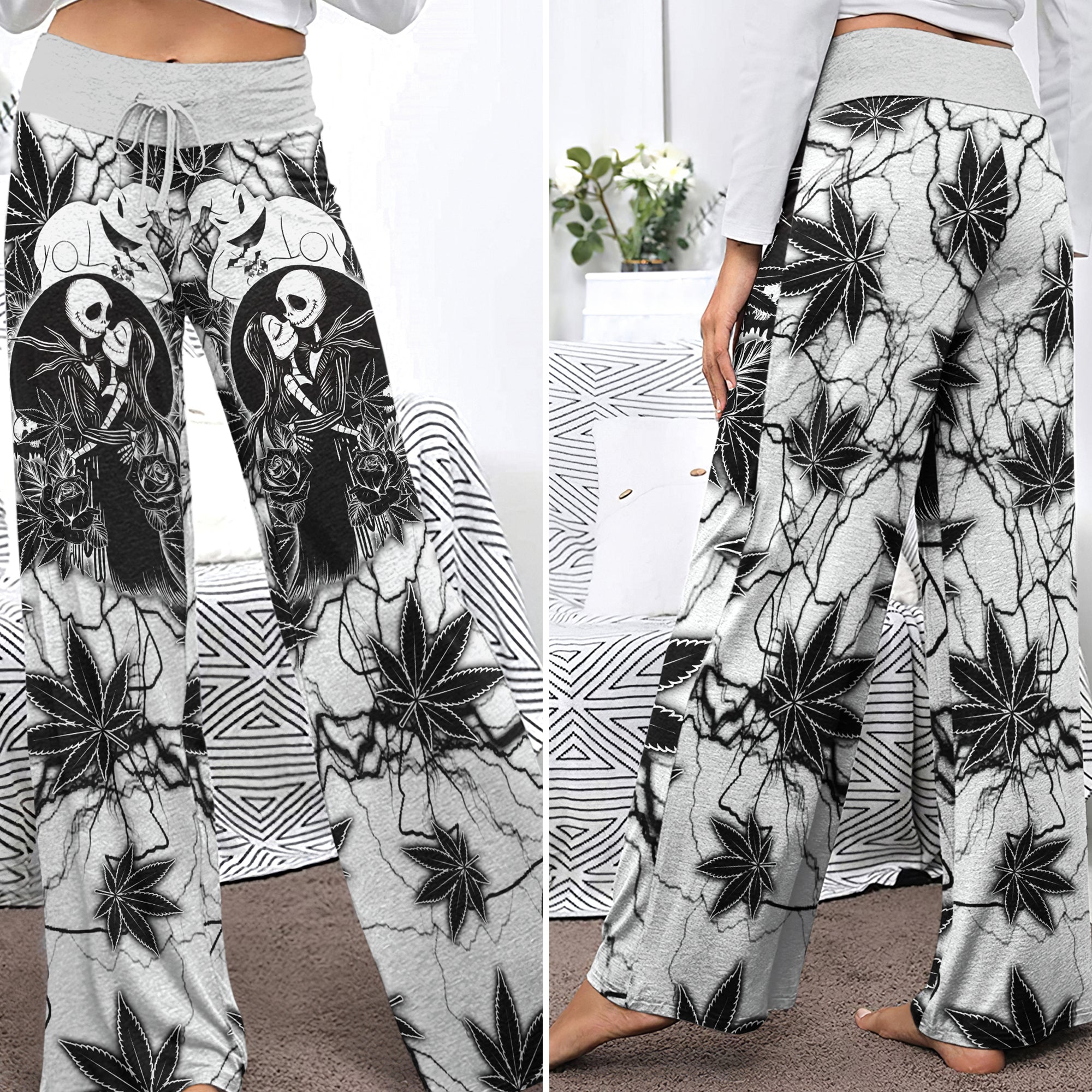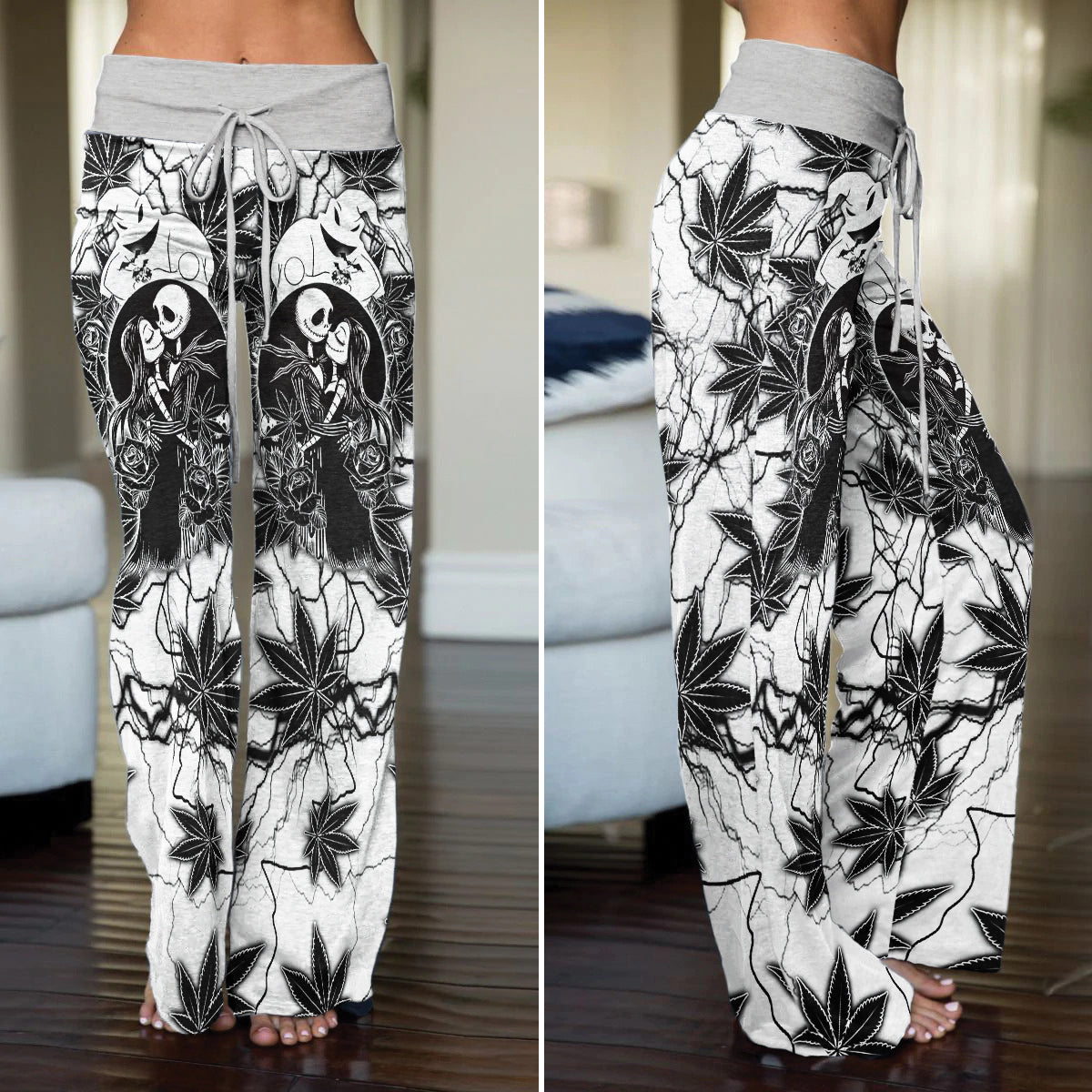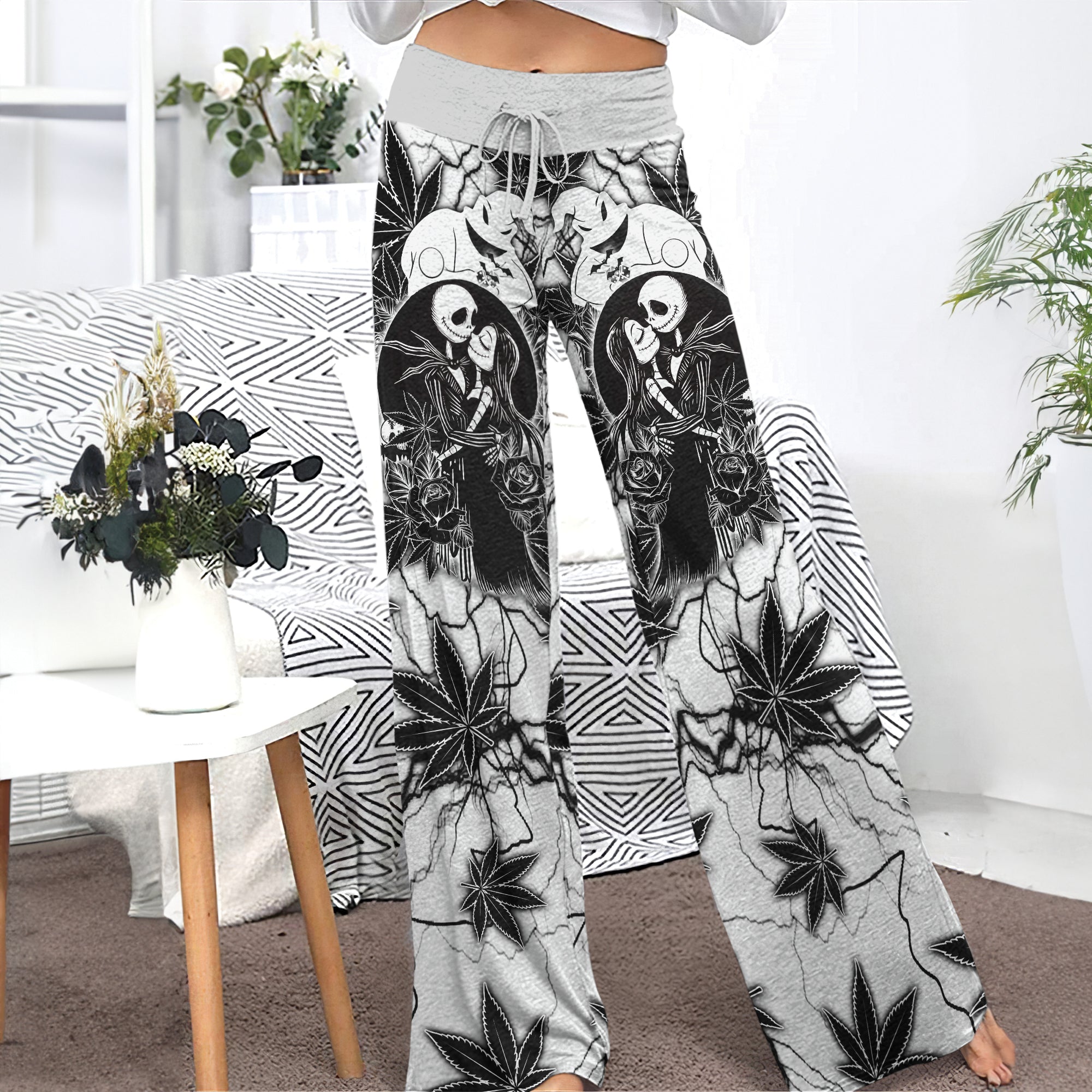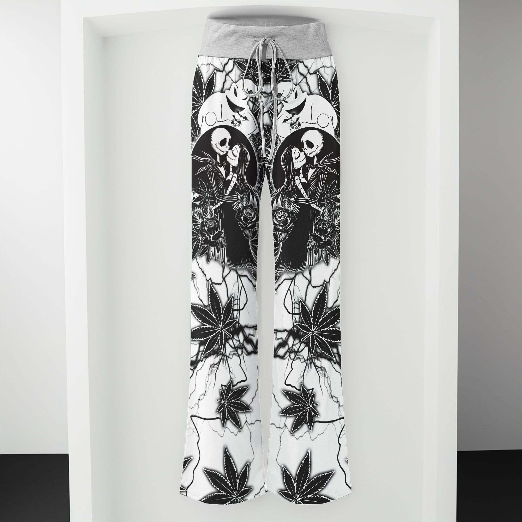 Black Couple Leaf Skeleton Women's High-waisted Wide Leg Pants | Wonder Skull