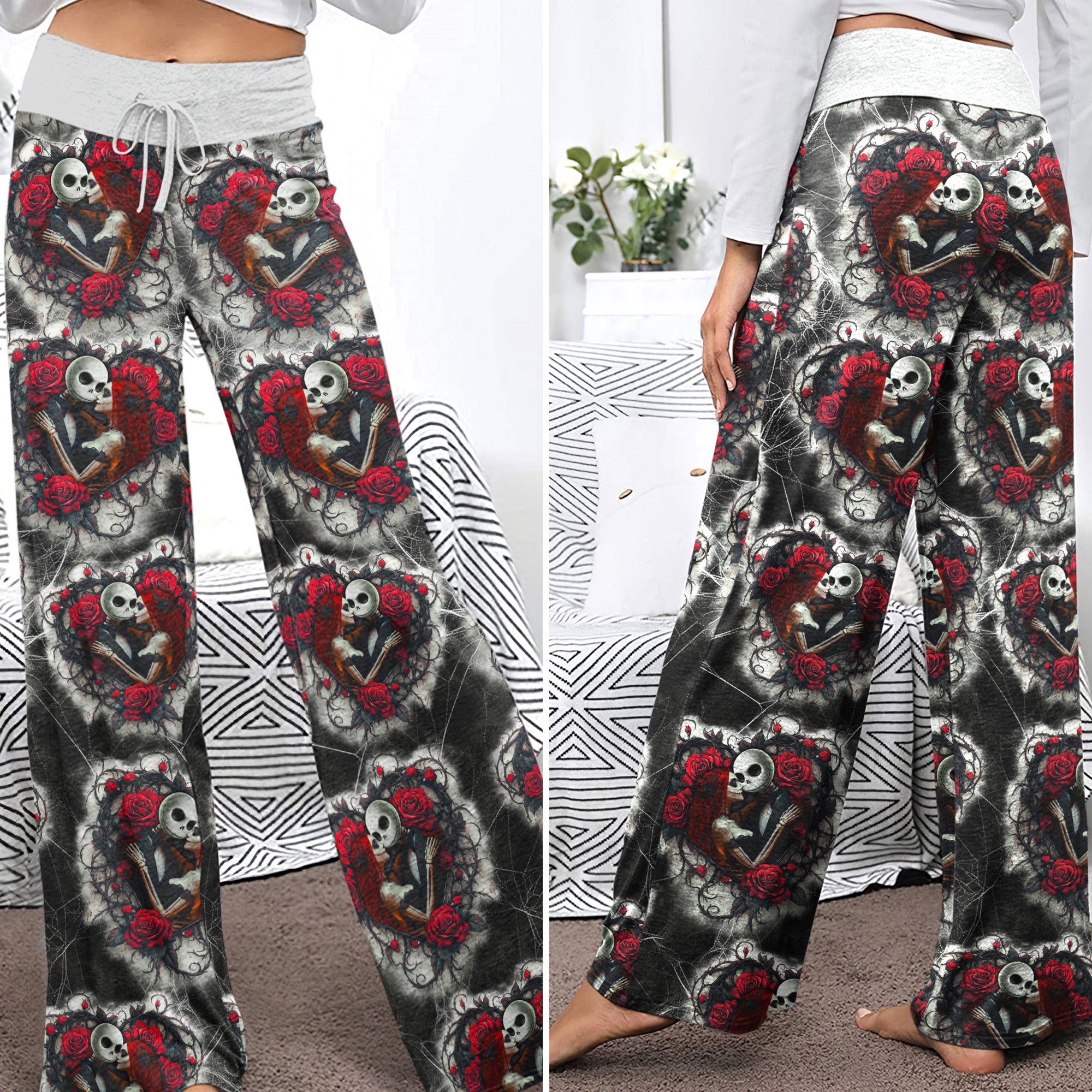 Couple Rose Pattern Women's High-waisted Wide Leg Pants | Wonder Skull
