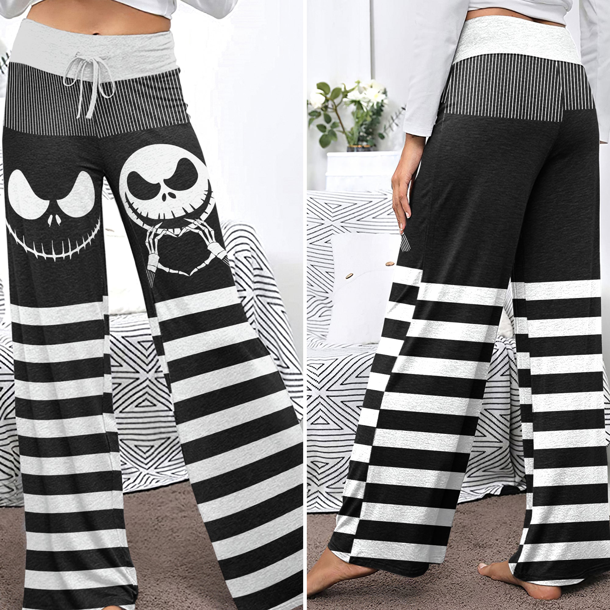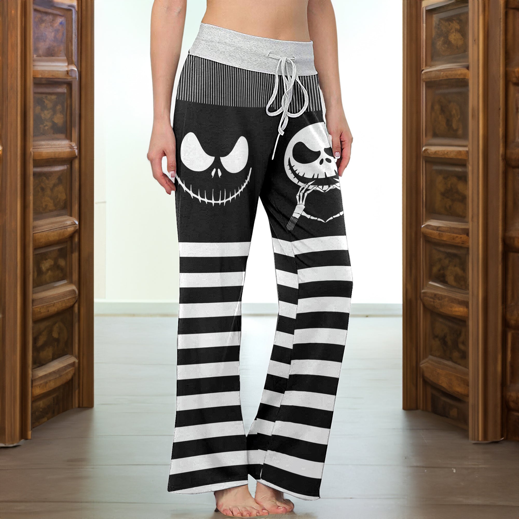 Gothic Grinline Art Women's High-waisted Wide Leg Pants | Wonder Skull
