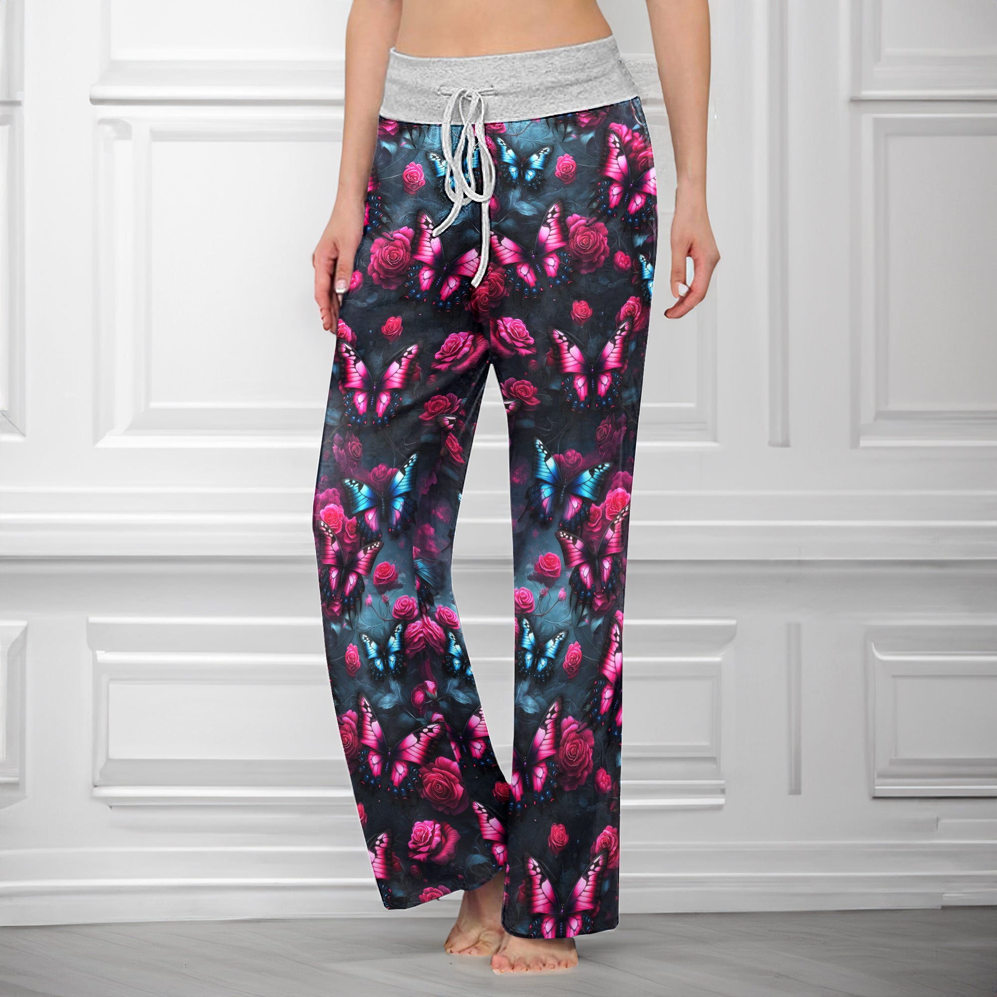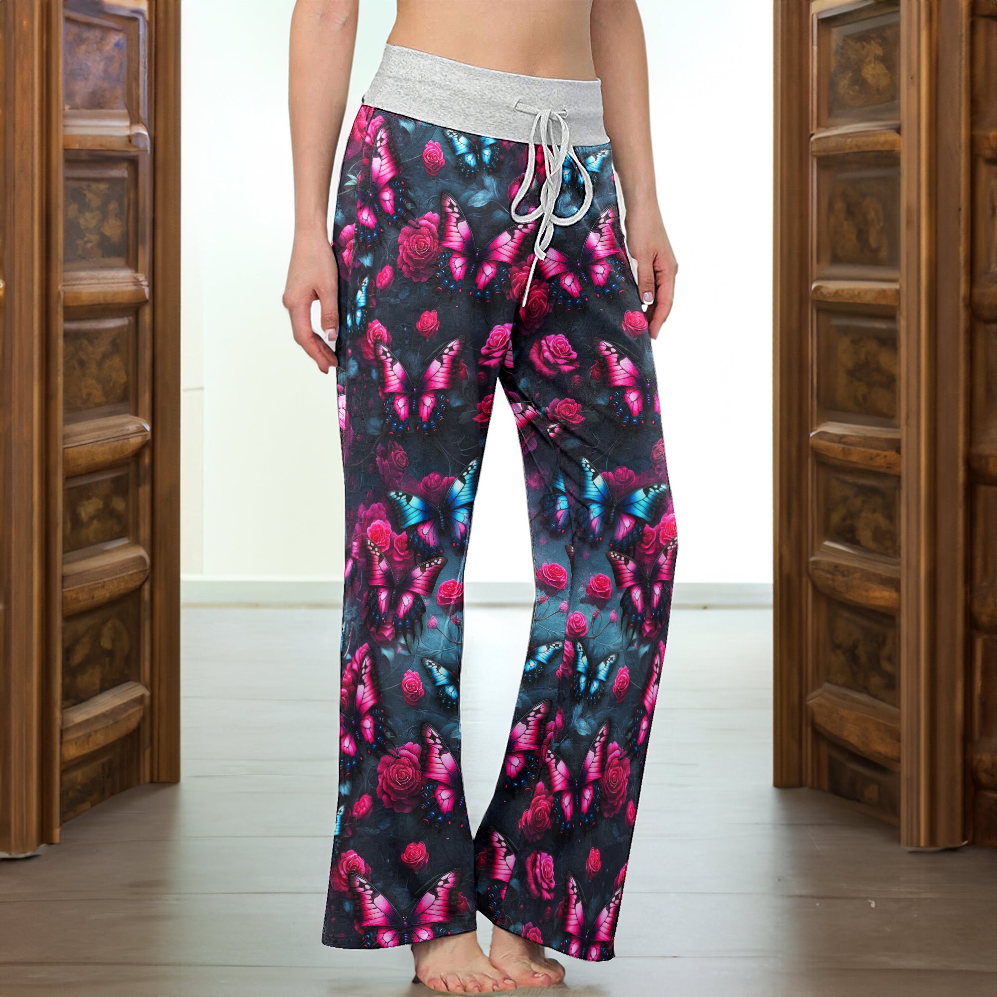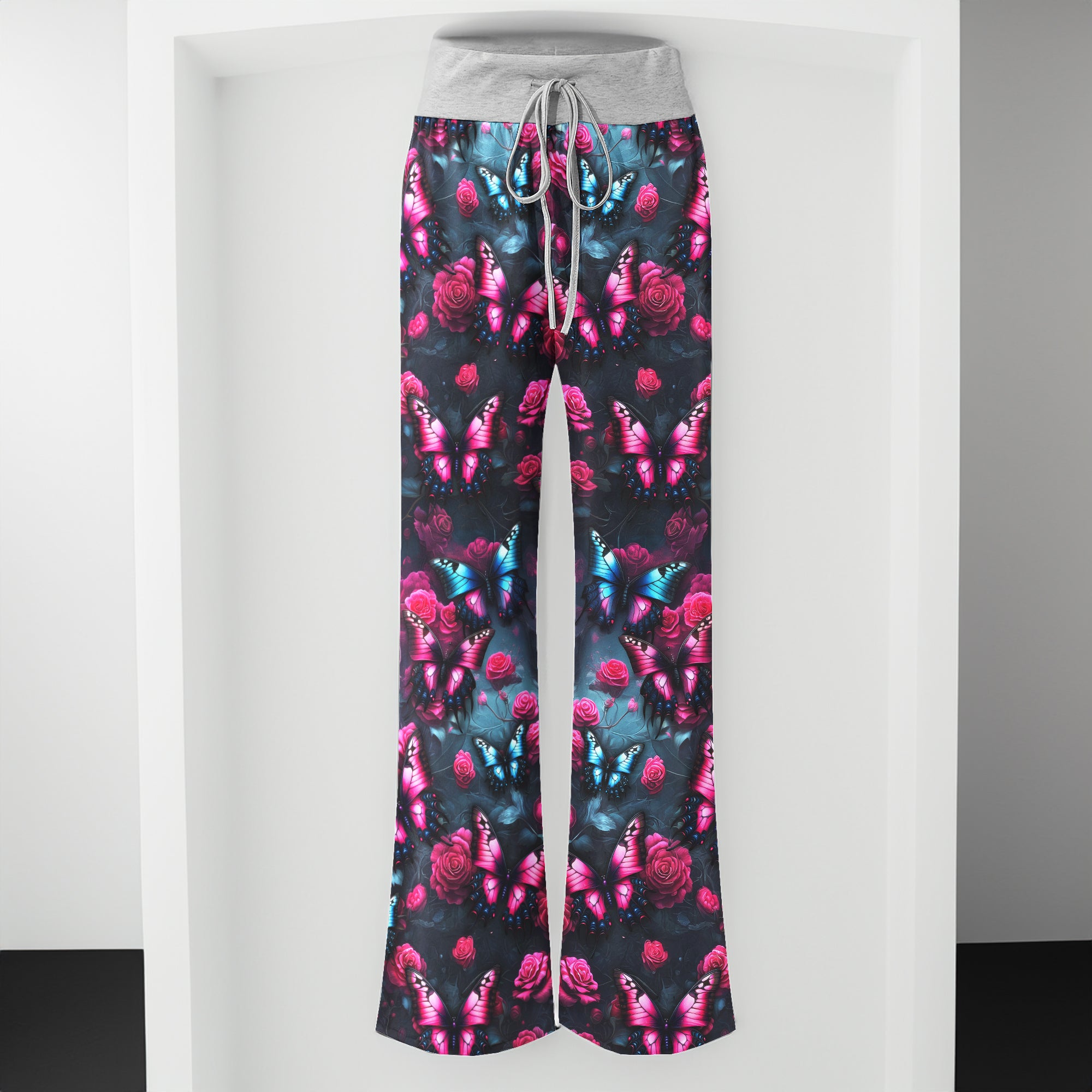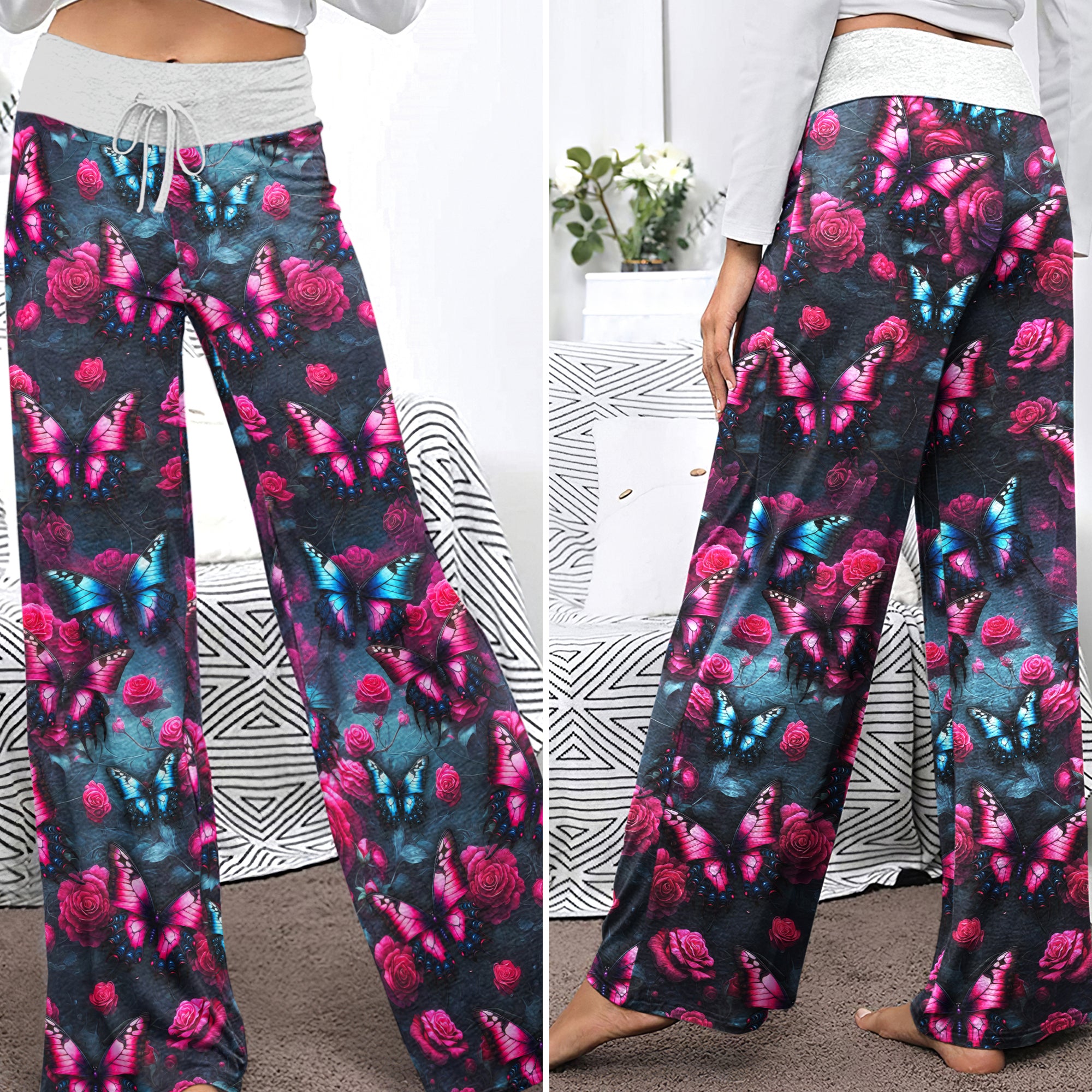 Neon Butterfly Pattern Women's High-waisted Wide Leg Pants