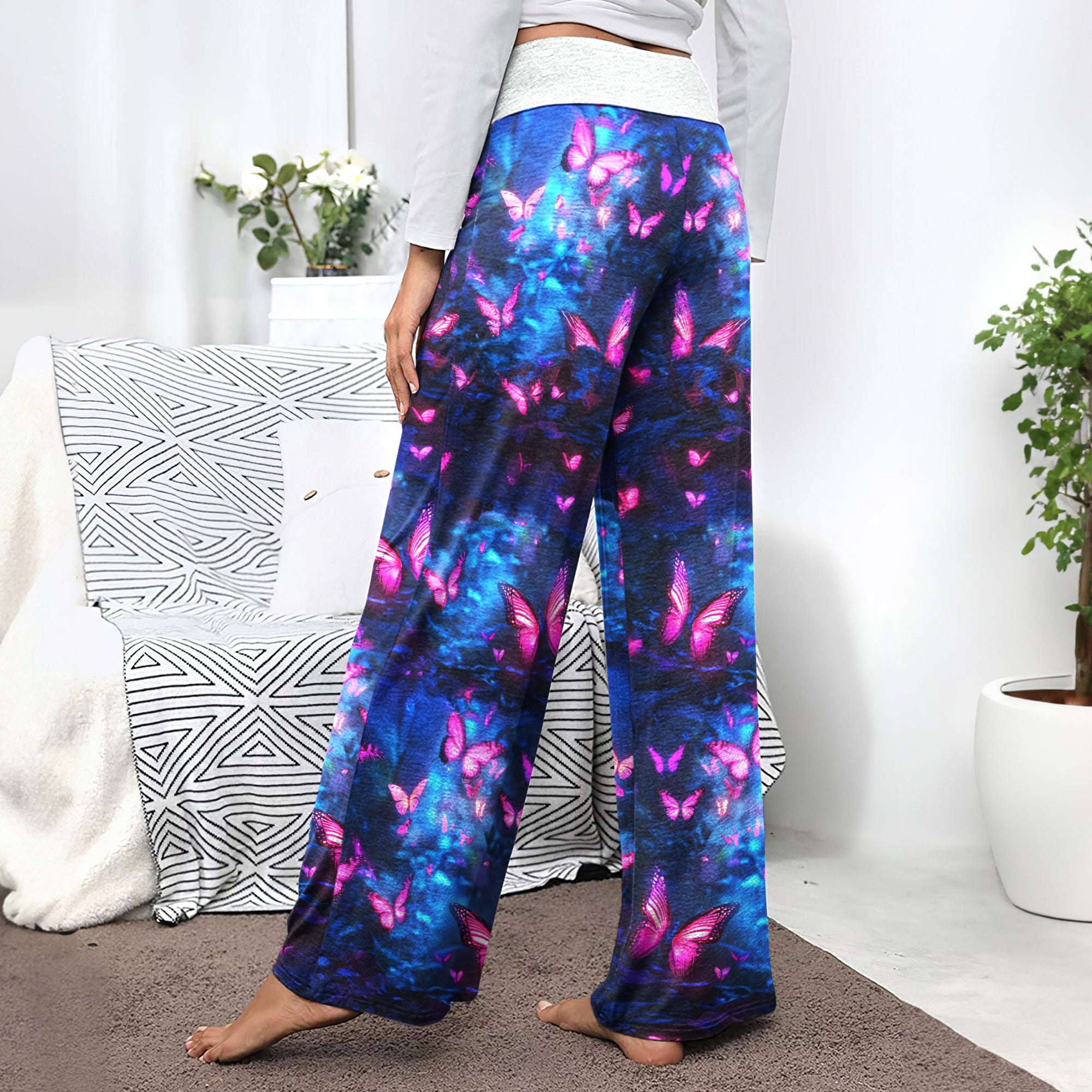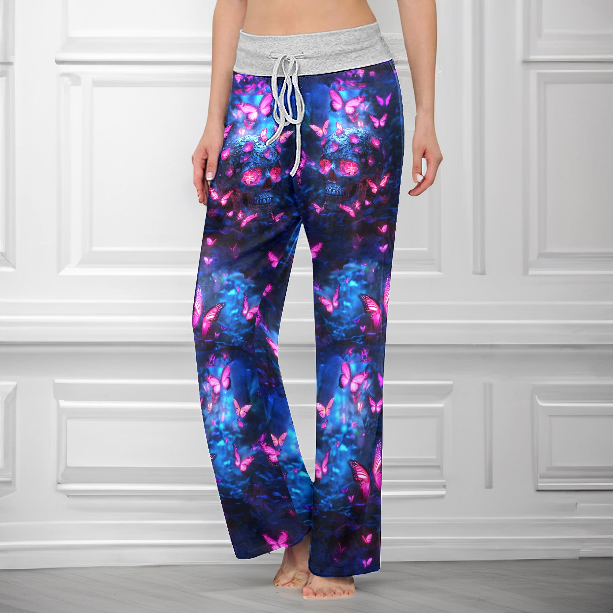 Neon Skull Butterfly Women's High-waisted Wide Leg Pants | Wonder Skull