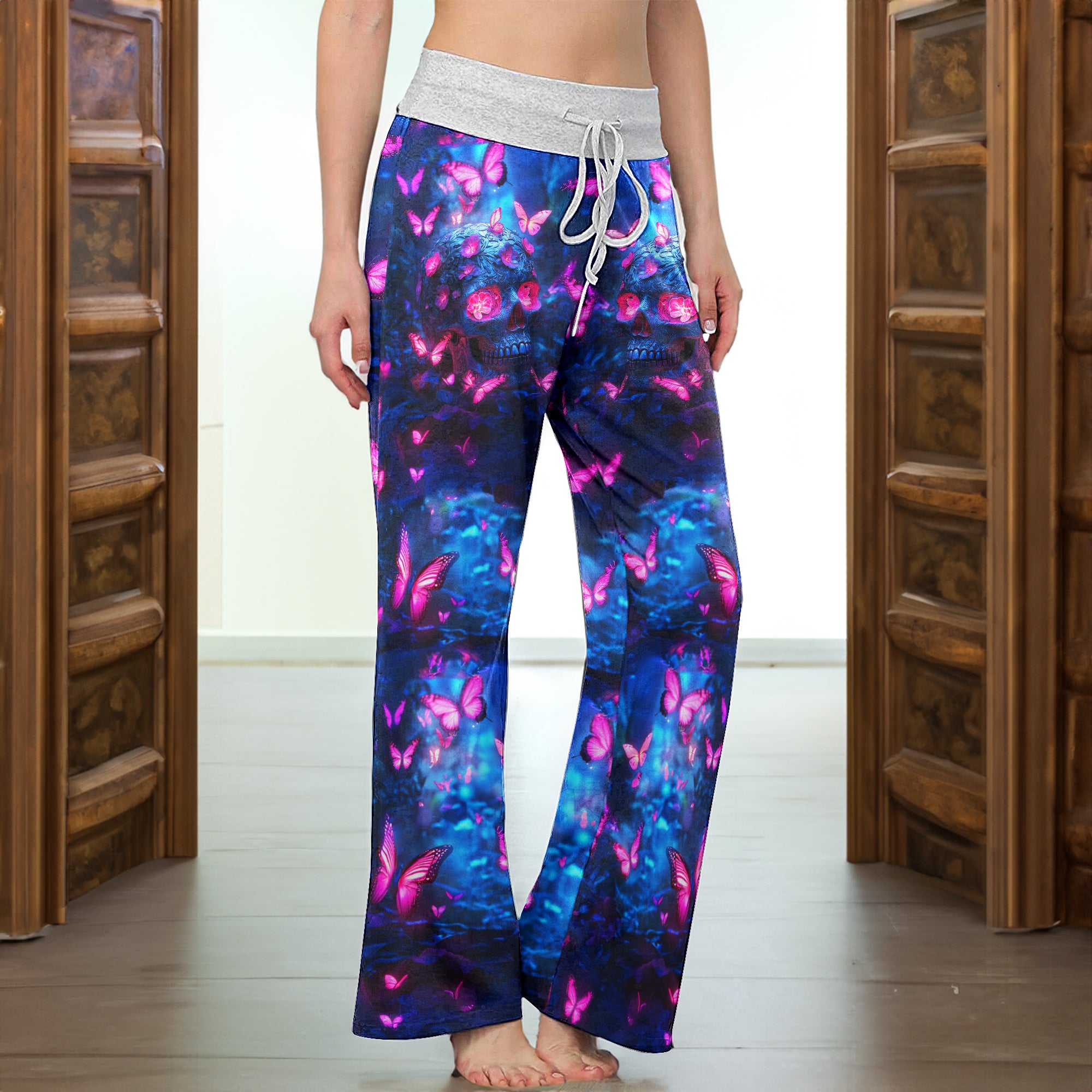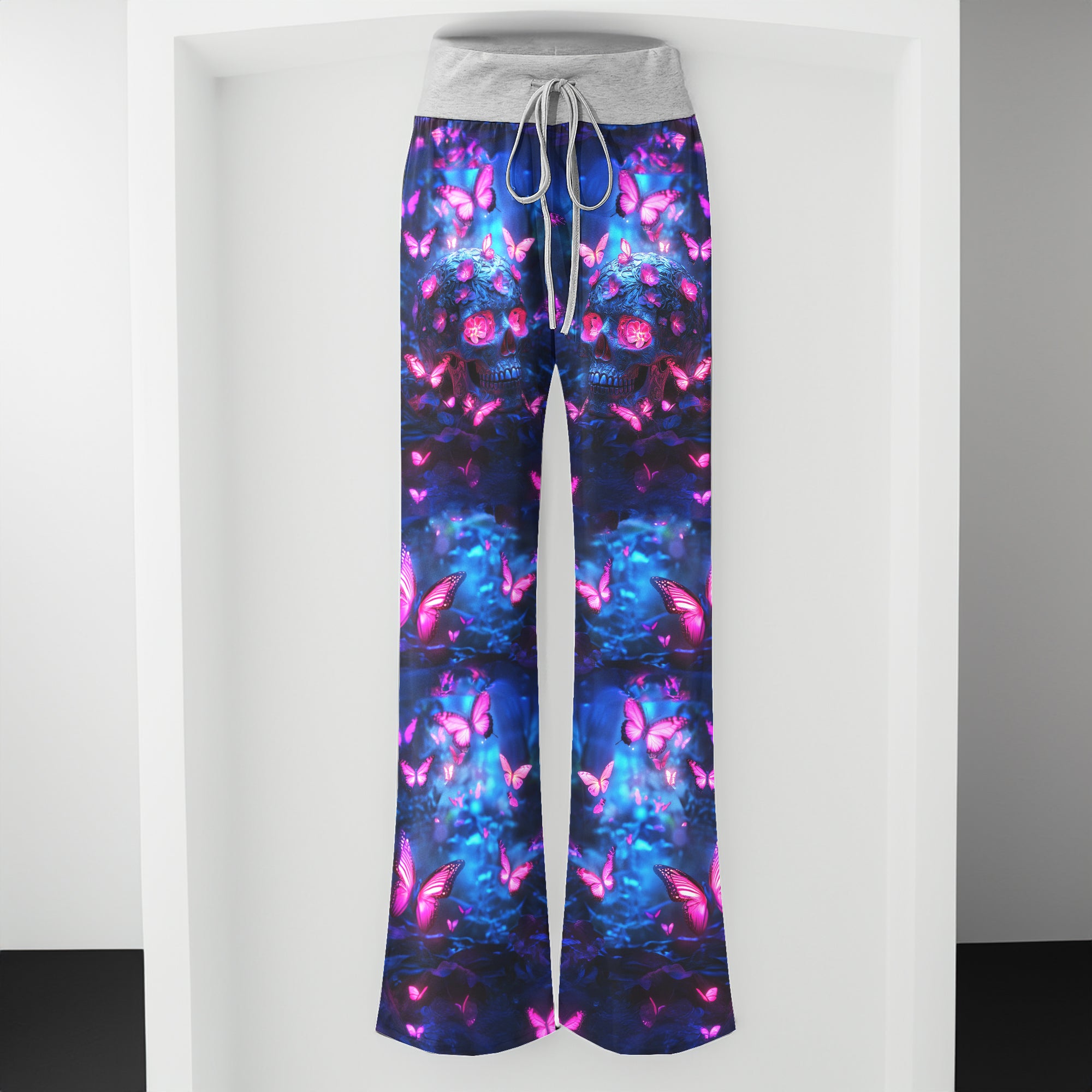 Enjoy the comfort and quality of the Neon Skull Butterfly High-waisted Wide Leg Pants. Constructed from a premium lightweight fabric, it offers unlimited movement, along with a unique and stylish pattern. It features a wide waistband for a streamlined and flattering fit. Perfect for any occasion, these trousers provide the perfect blend of classic style and modern design.