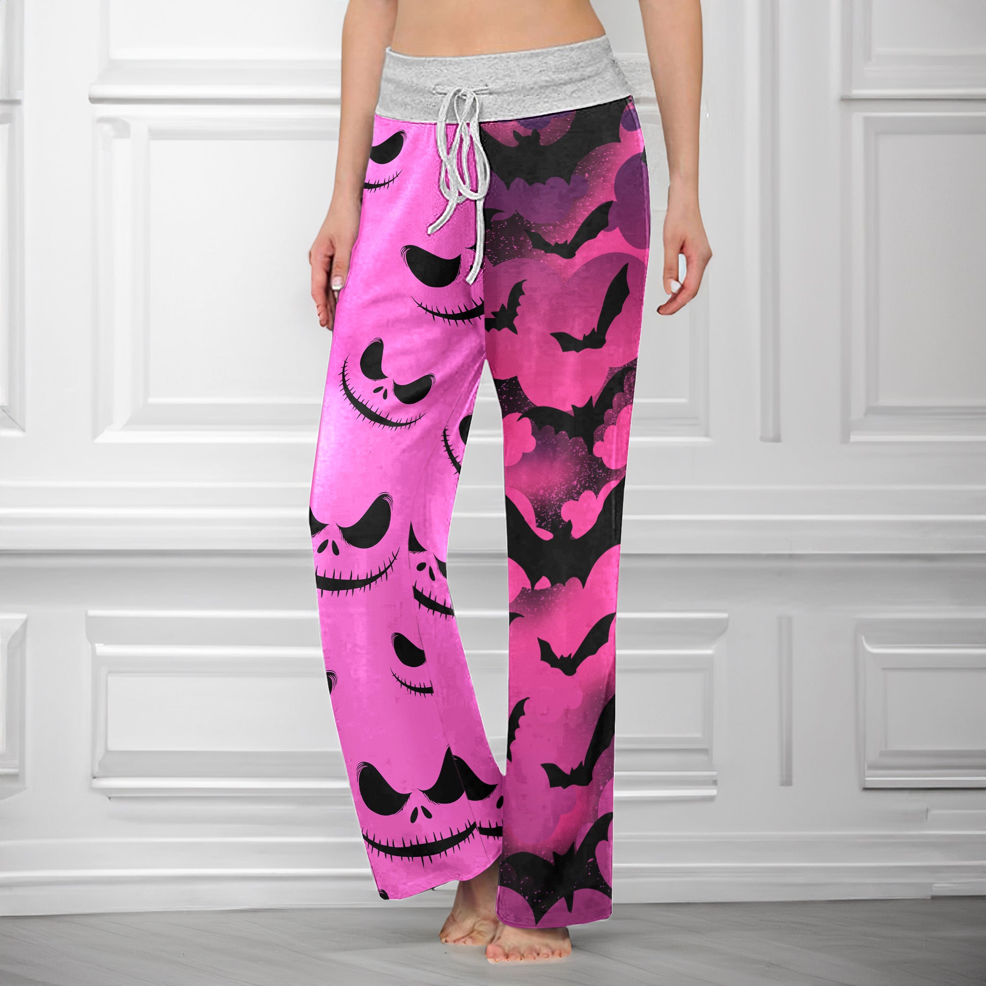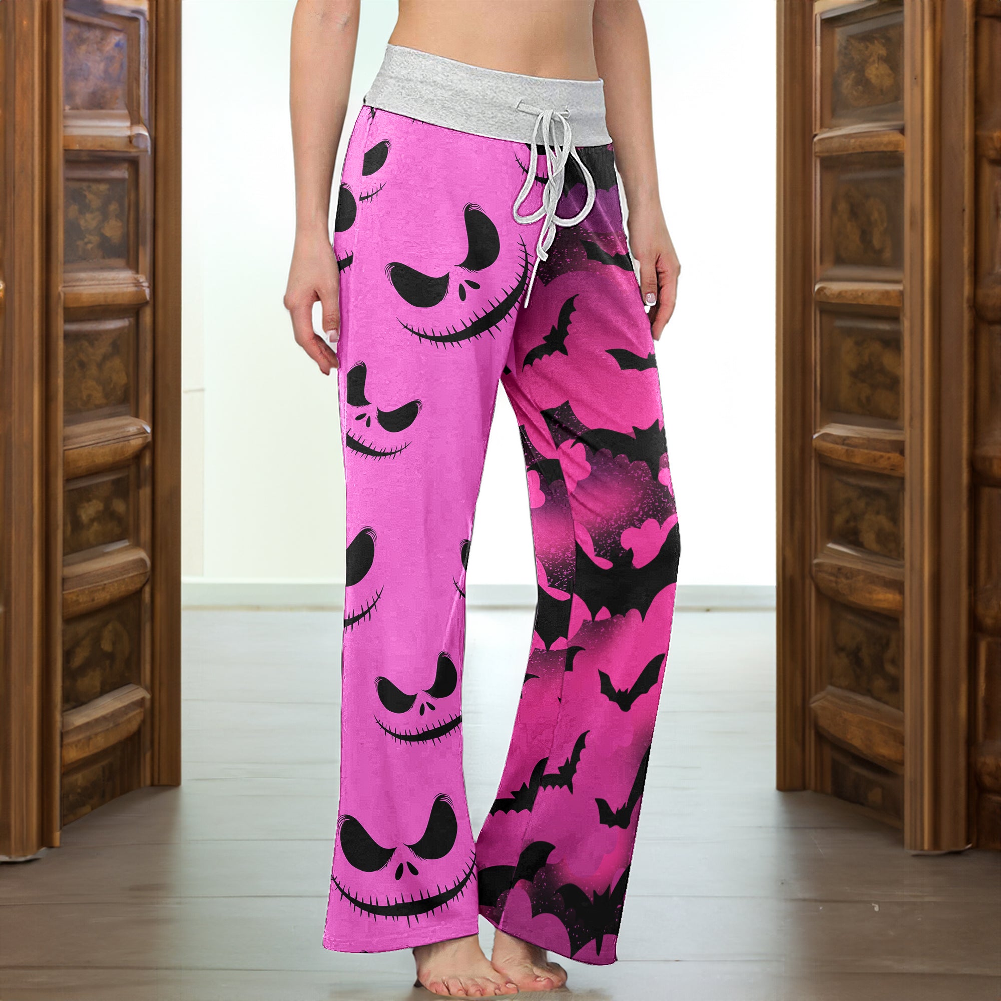 Pink Bat skull Pattern Women's High-waisted Wide Leg Pants | Wonder Skull
