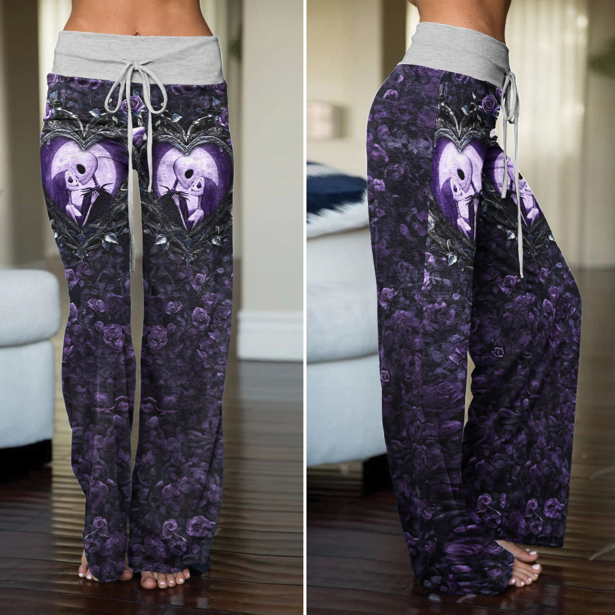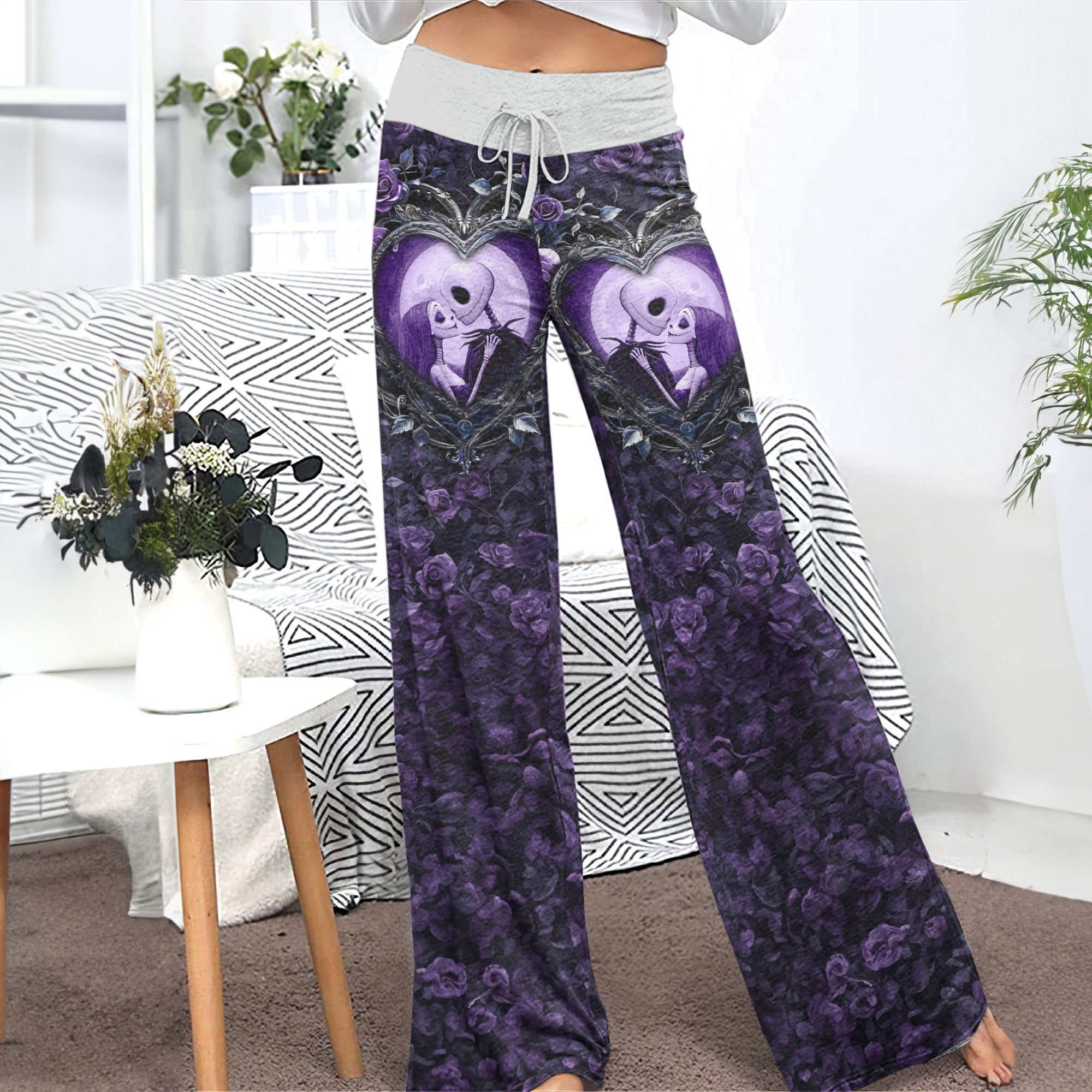 Purple Couple Moon Women's High-waisted Wide Leg Pants | Wonder Skull