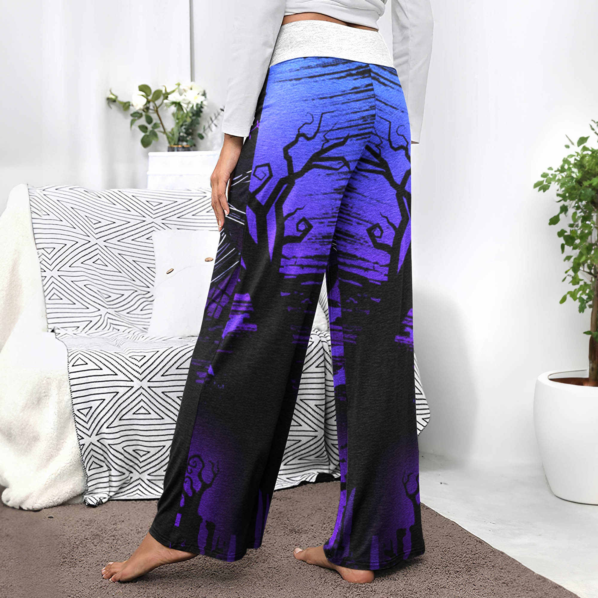 Purple Night Moon Women's High-waisted Wide Leg Pants | Wonder Skull