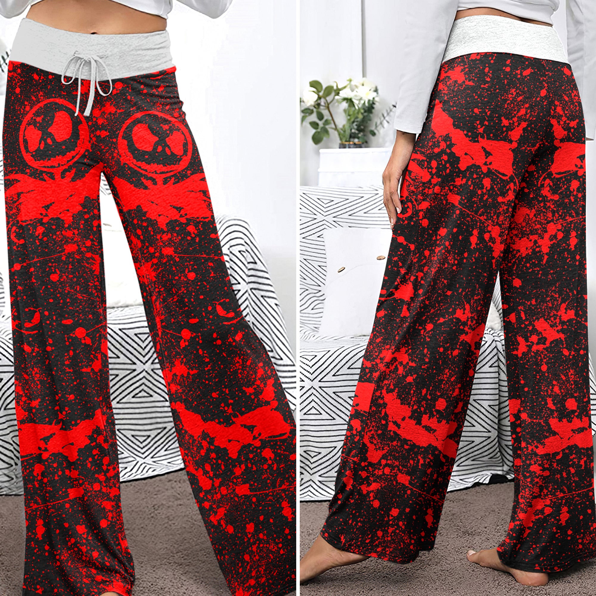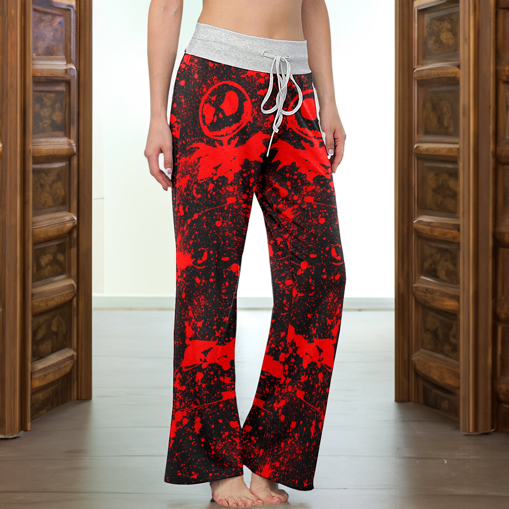 Red Brush Art Women's High-waisted Wide Leg Pants | Wonder Skull