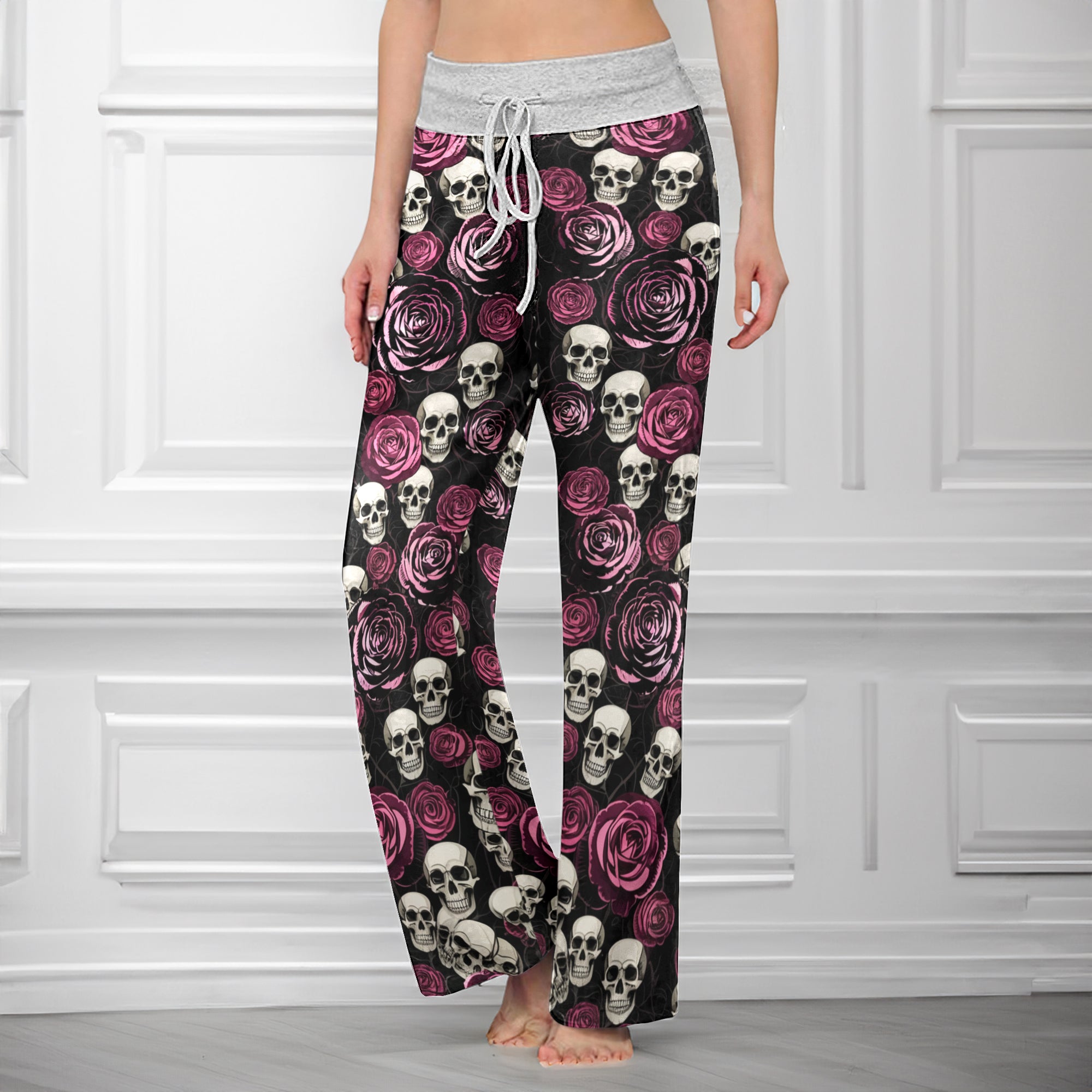 Enjoy the comfort and quality of the Pastel Gothic Bloom Skull High-waisted Wide Leg Pants. Constructed from a premium lightweight fabric, it offers unlimited movement, along with a unique and stylish pattern. It features a wide waistband for a streamlined and flattering fit. Perfect for any occasion, these trousers provide the perfect blend of classic style and modern design.