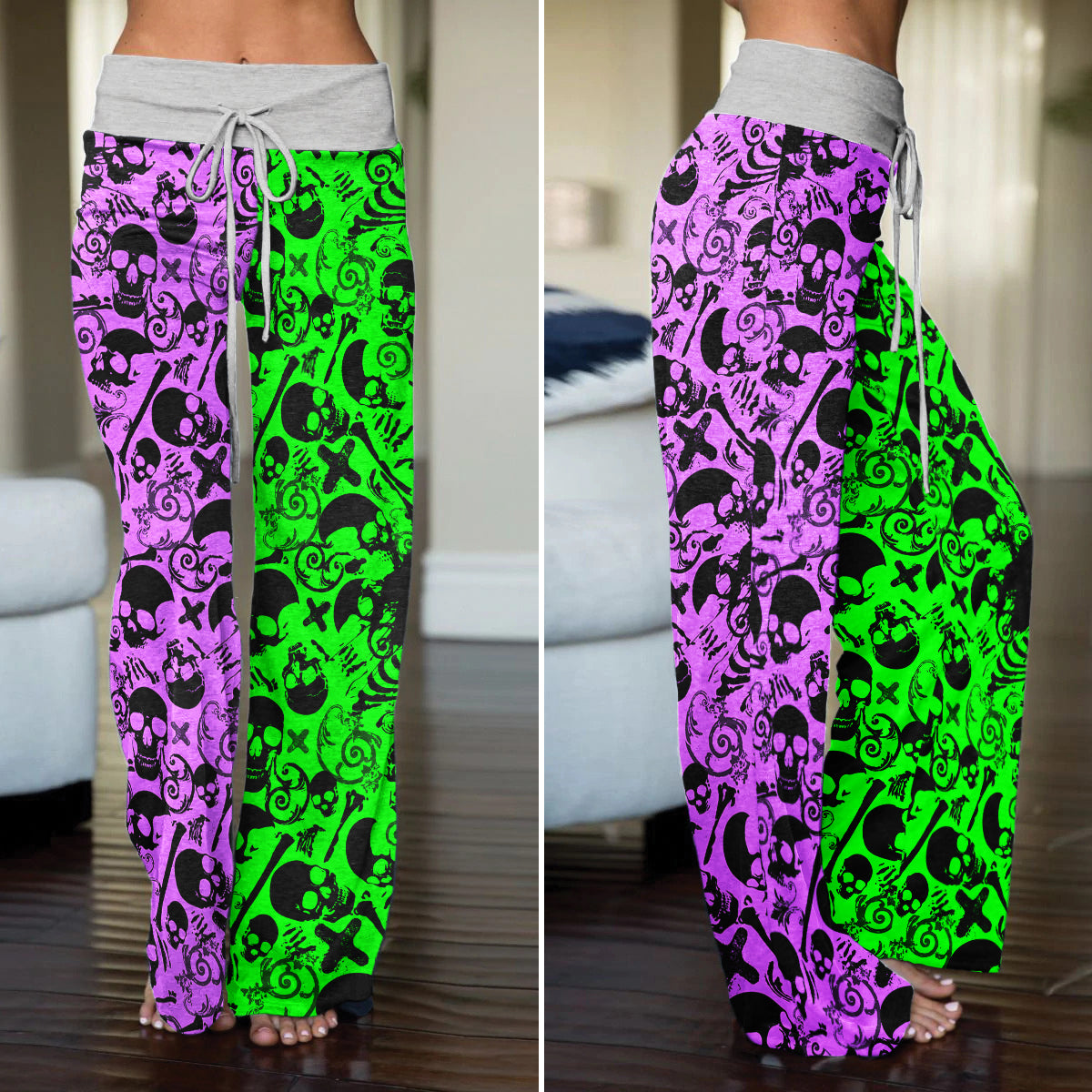 Enjoy the comfort and quality of the Radical Skull Graffiti Mix High-waisted Wide Leg Pants. Constructed from a premium lightweight fabric, it offers unlimited movement, along with a unique and stylish pattern. It features a wide waistband for a streamlined and flattering fit. Perfect for any occasion, these trousers provide the perfect blend of classic style and modern design.