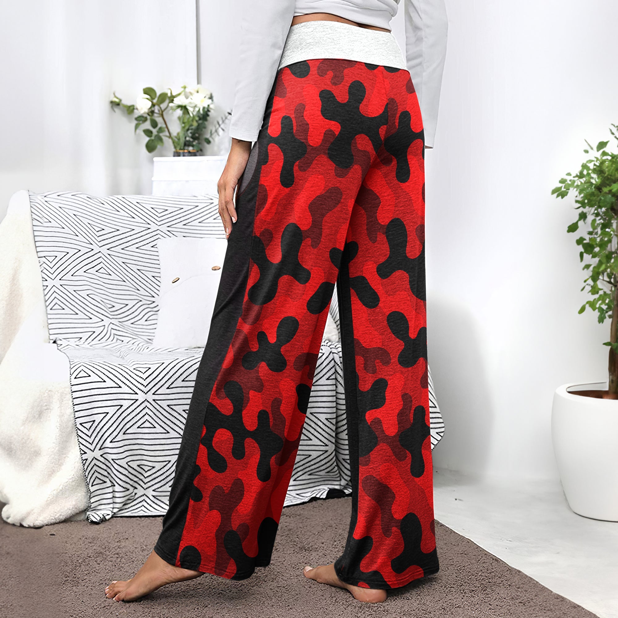 Red Camo Skull Medallion Women's High-waisted Wide Leg Pants