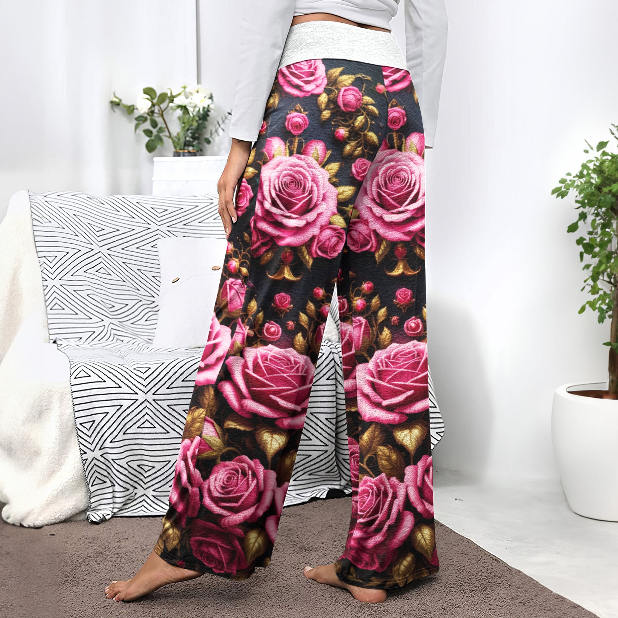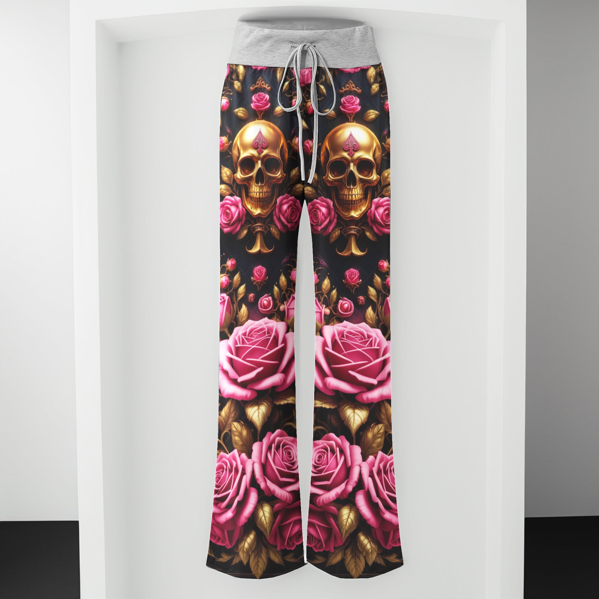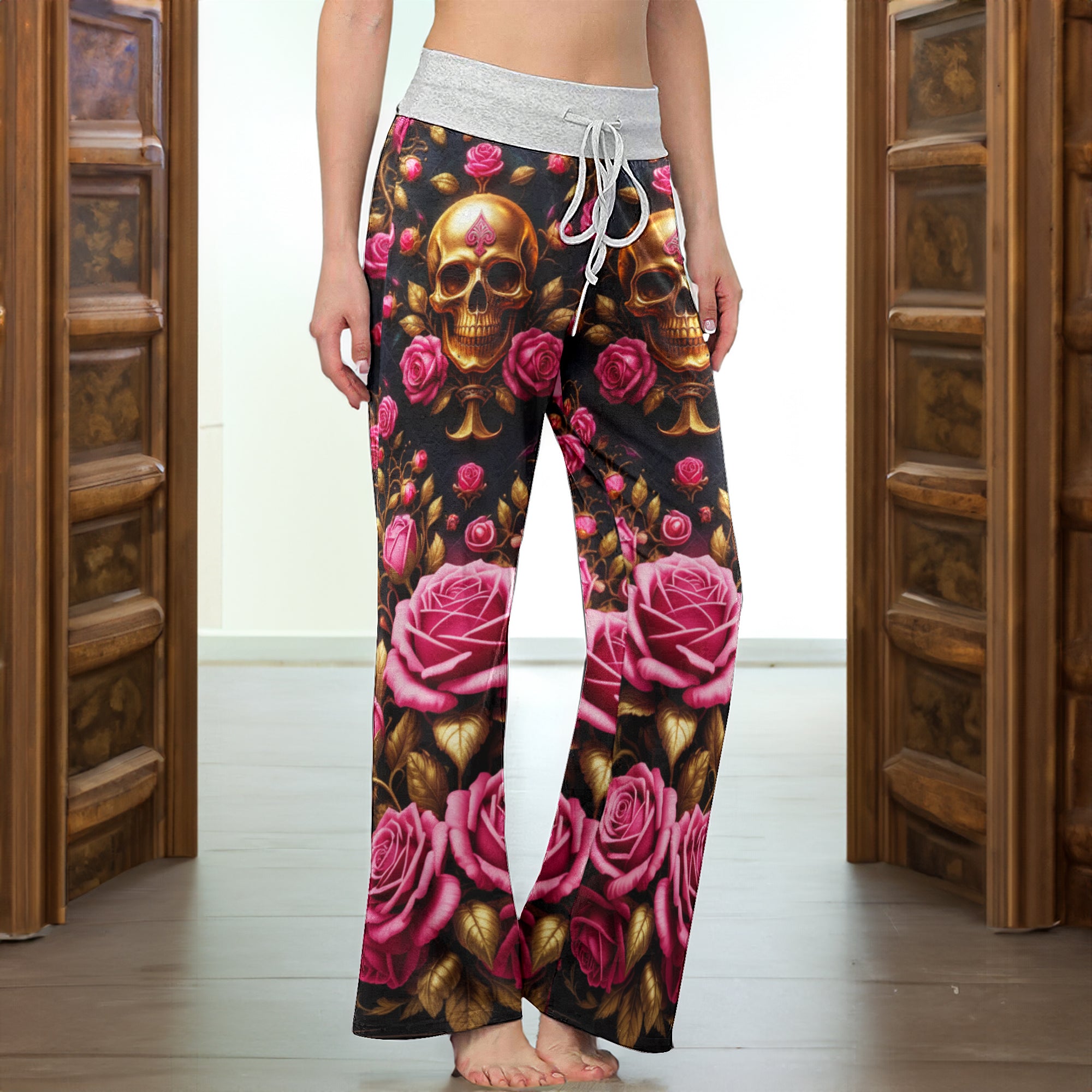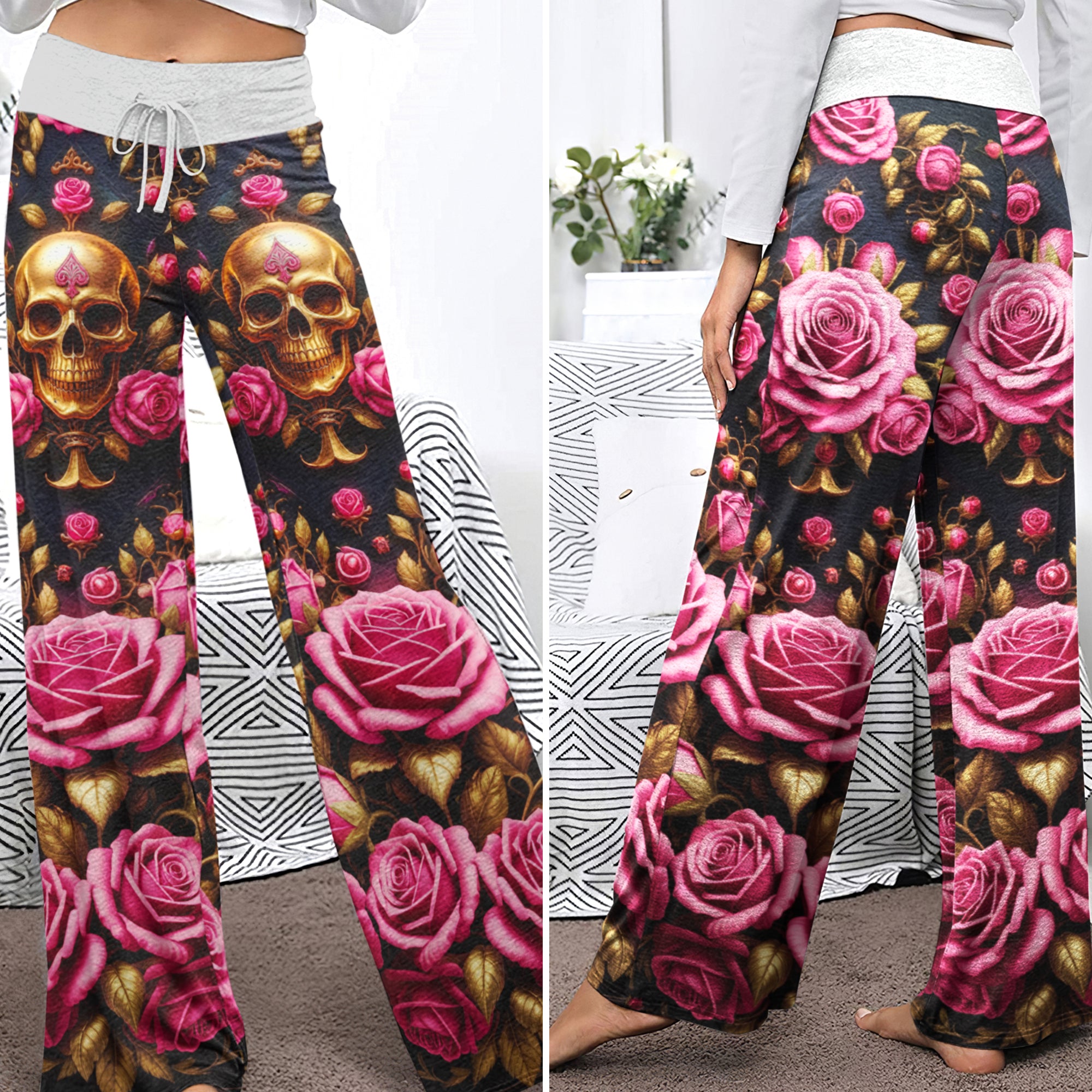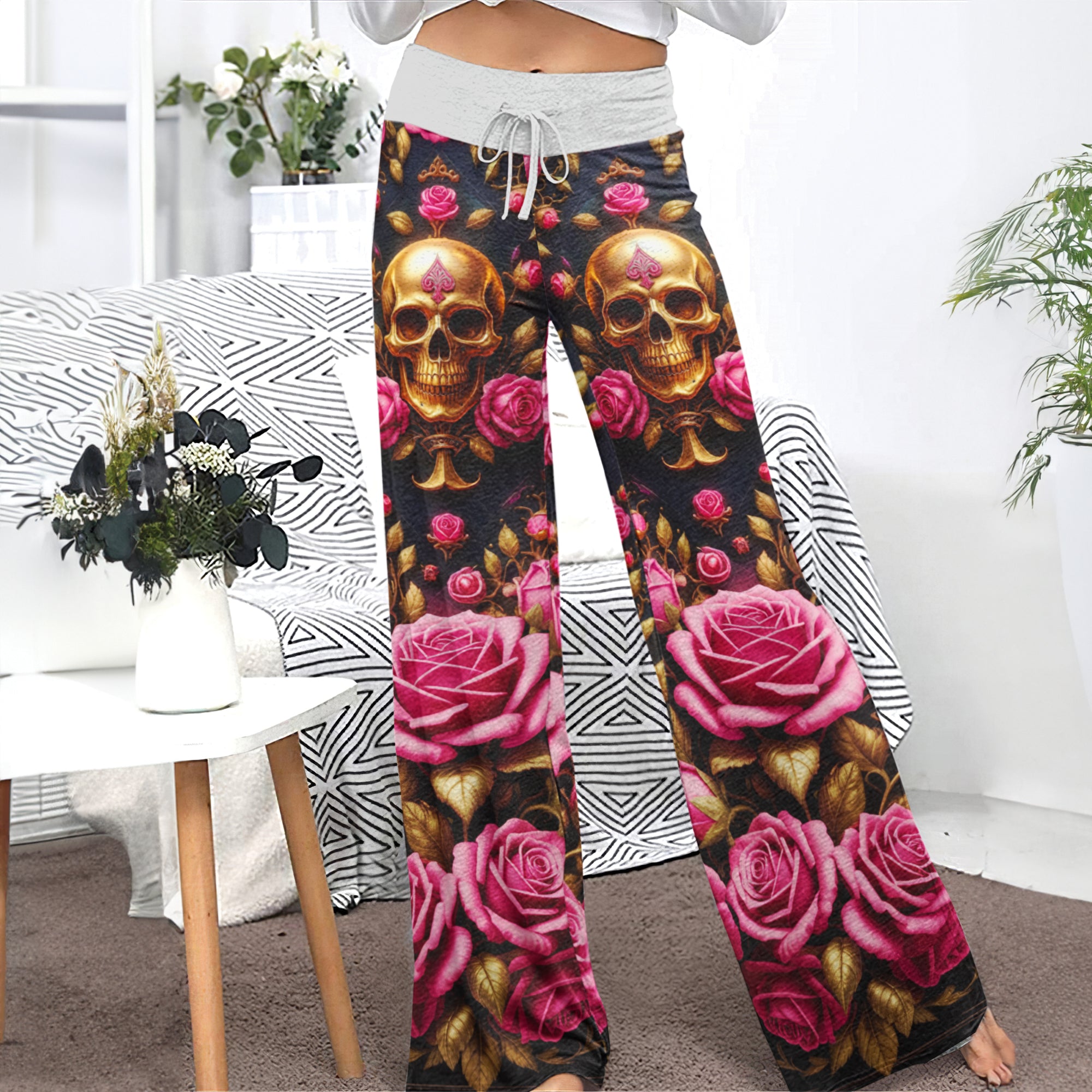Skull Rose Royal Art Women's High-waisted Wide Leg Pants