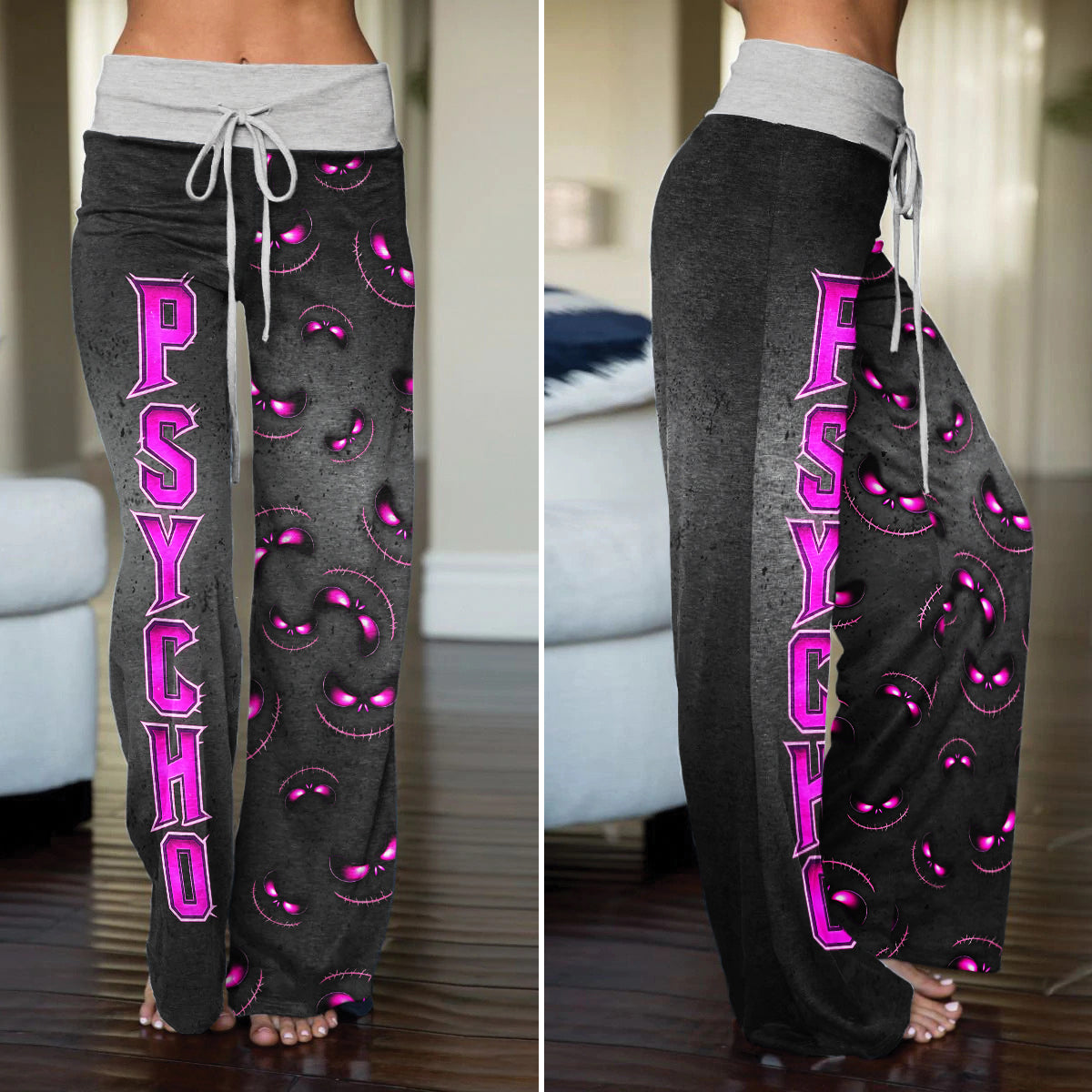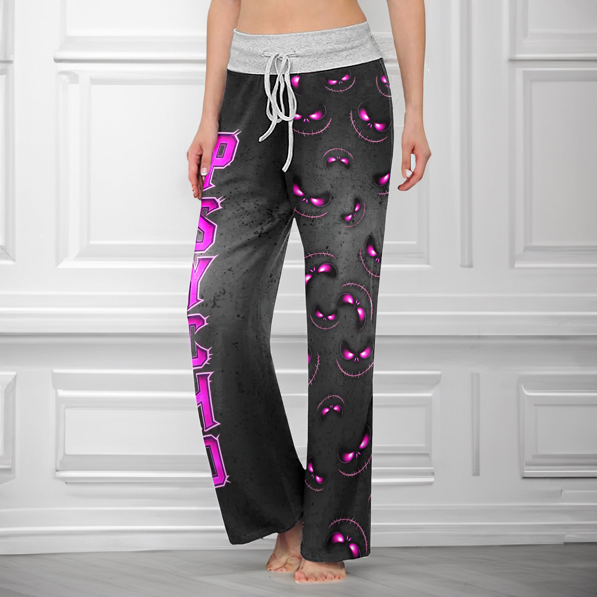 Enjoy the comfort and quality of the Stitched Violet Skull Pattern High-waisted Wide Leg Pants. Constructed from a premium lightweight fabric, it offers unlimited movement, along with a unique and stylish pattern. It features a wide waistband for a streamlined and flattering fit. Perfect for any occasion, these trousers provide the perfect blend of classic style and modern design.