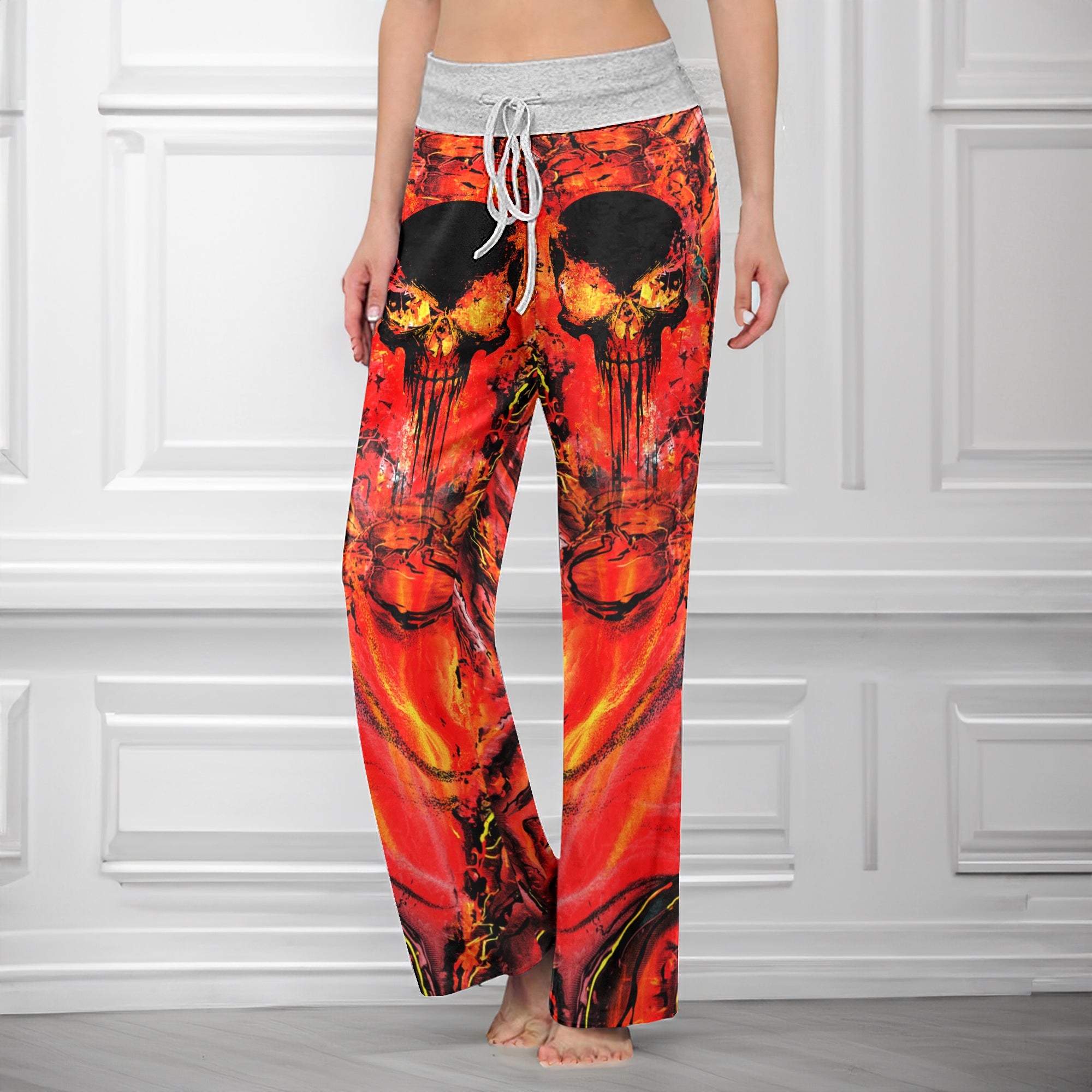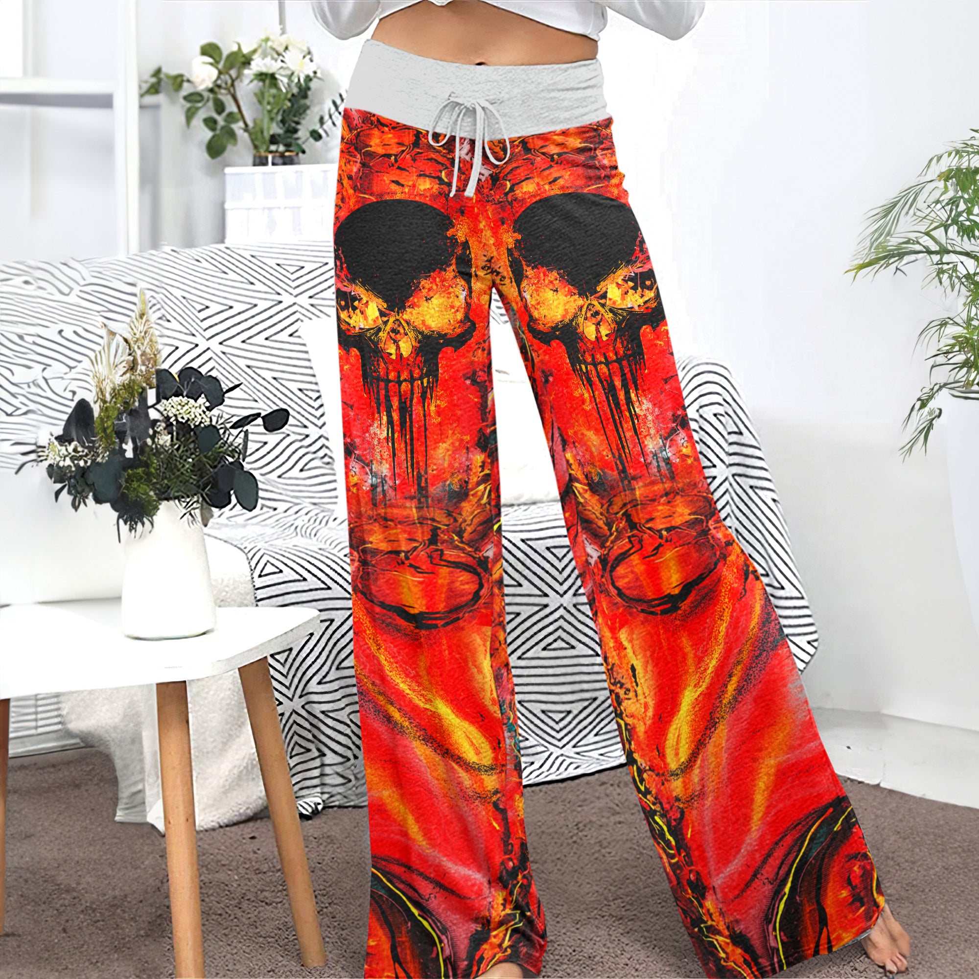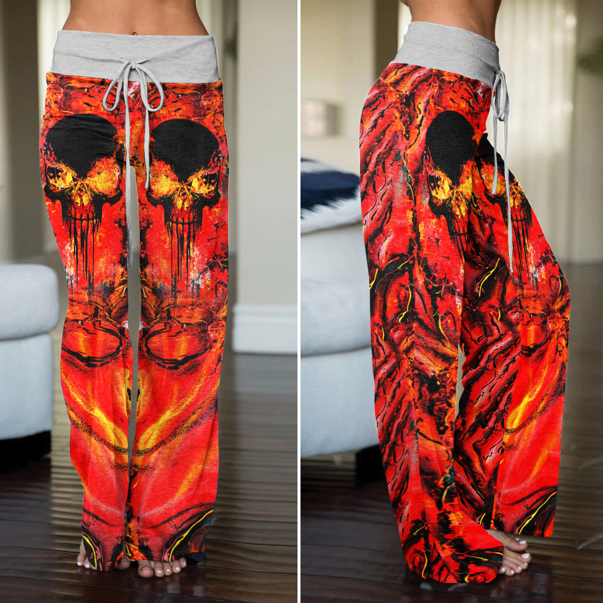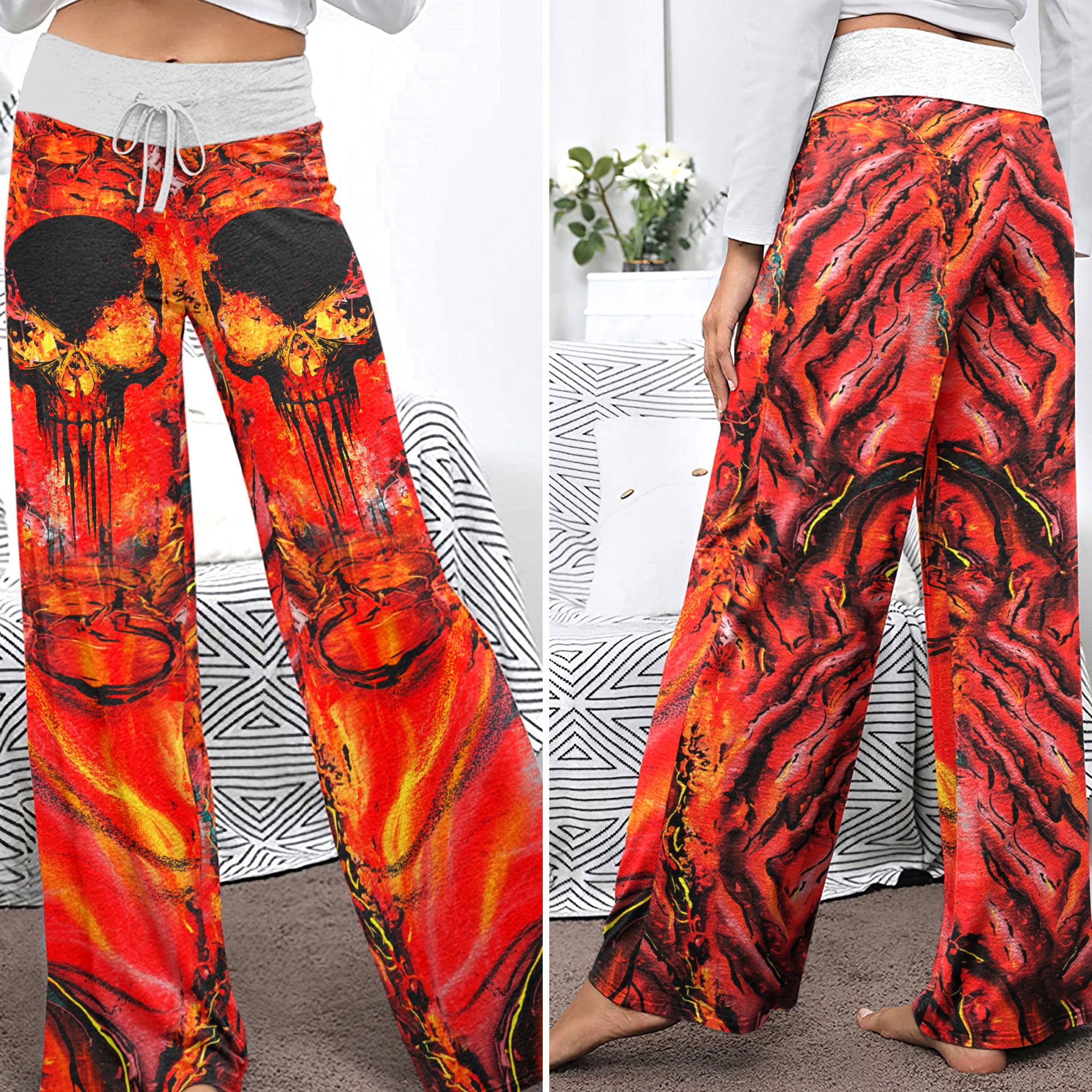 Volcanic Skull Art Women's High-waisted Wide Leg Pants