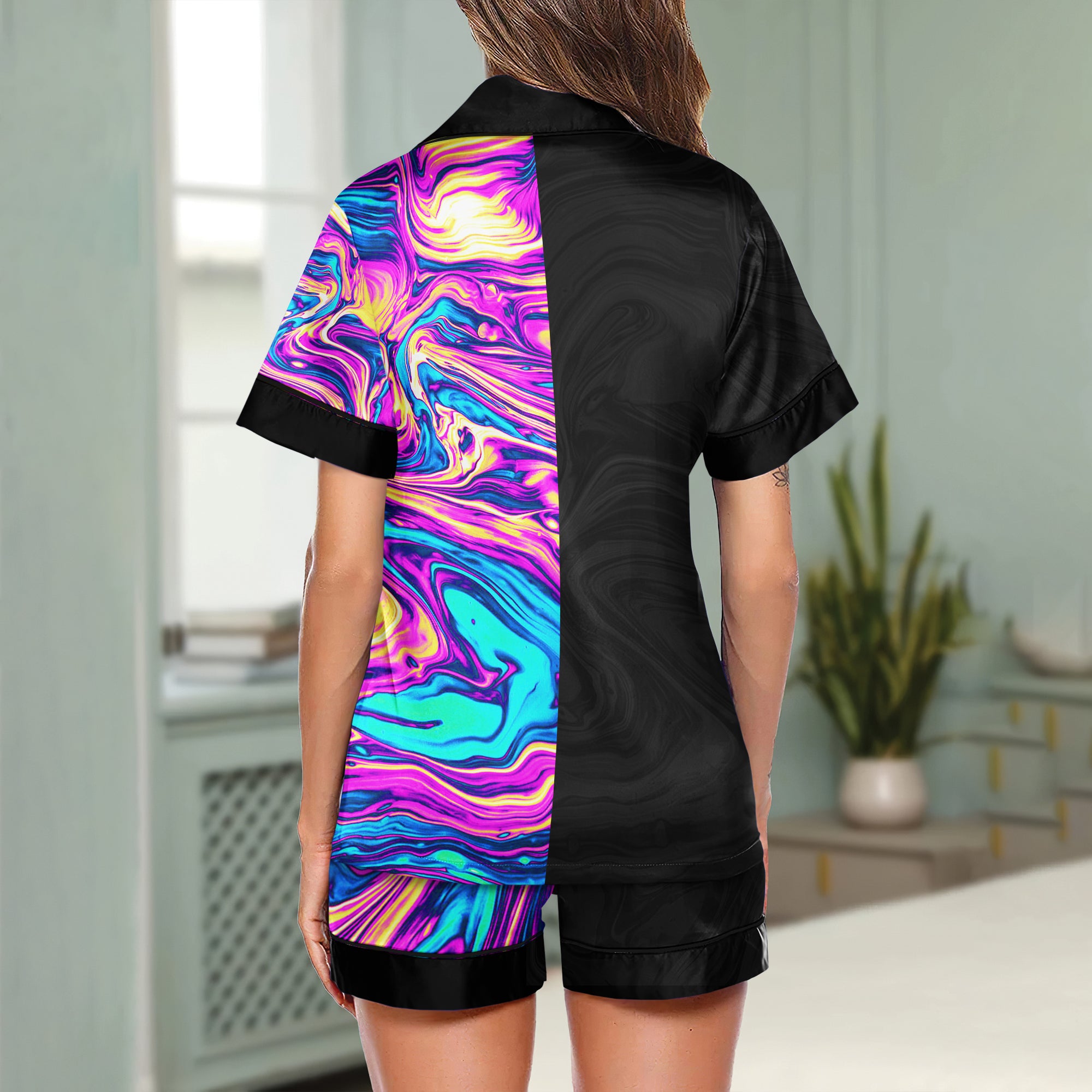 Holographic Women's Pajama Sets Top Sleeve & Short Bottom