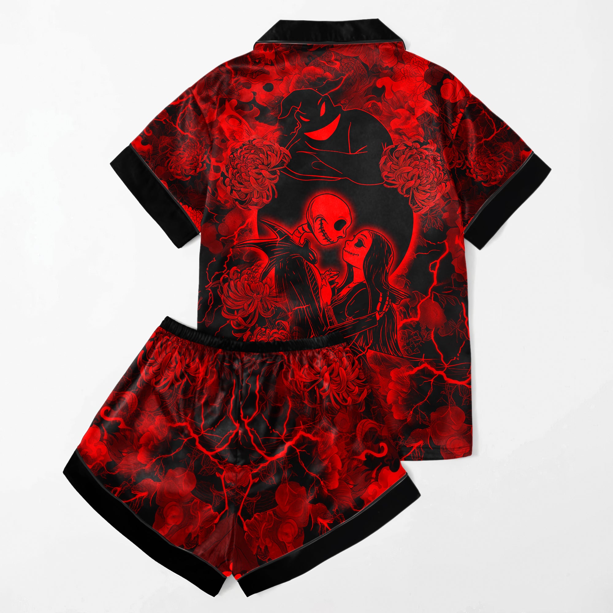 Red Midnight Romance Women's Pajama Sets Top Sleeve & Short Bottom
